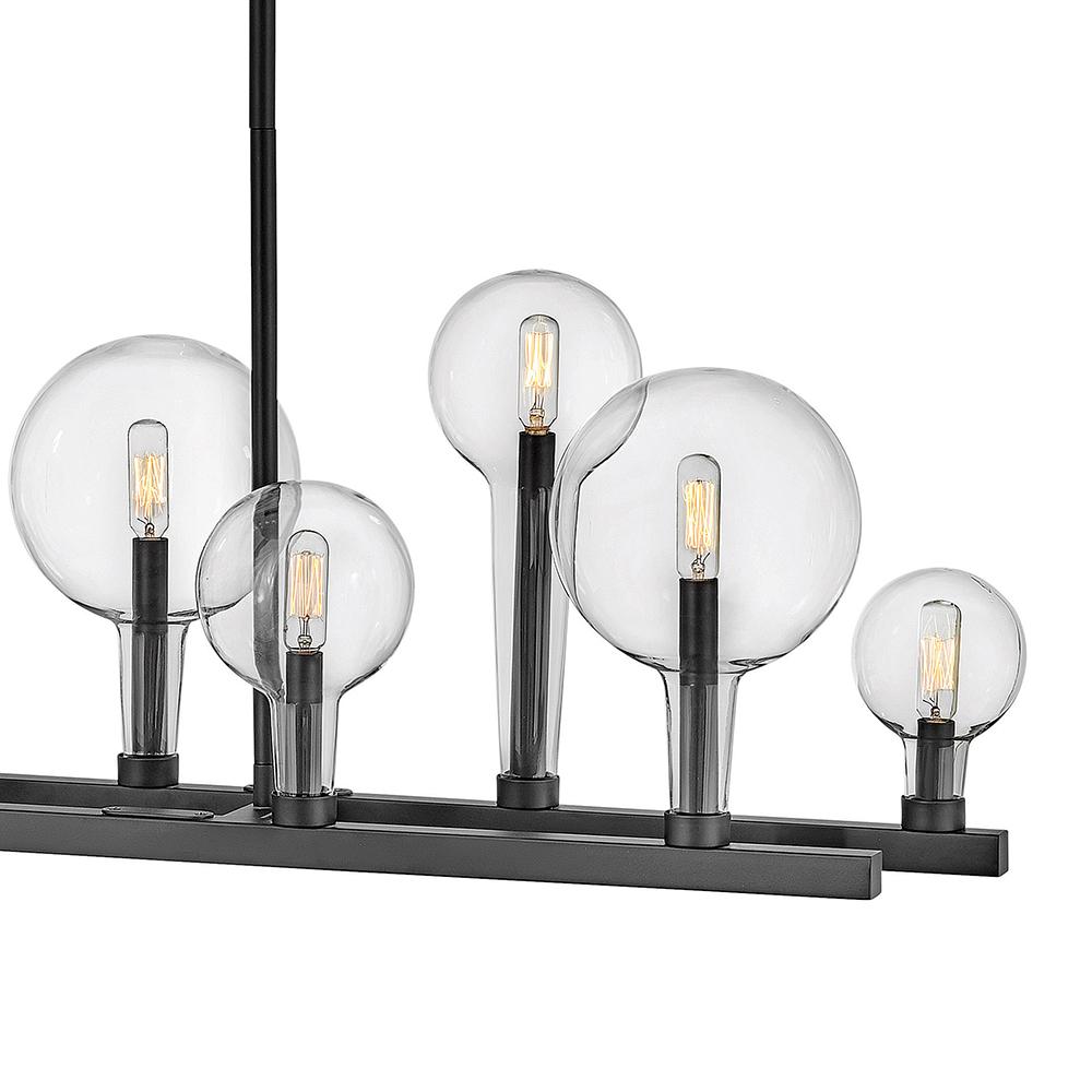 Inspired by the vintage flasks of a chemistry classroom, Alchemy is a unique statement piece. Its tapered globes instantly stand out in a variety of spaces, while the open silhouette enhances its sophisticated edge.