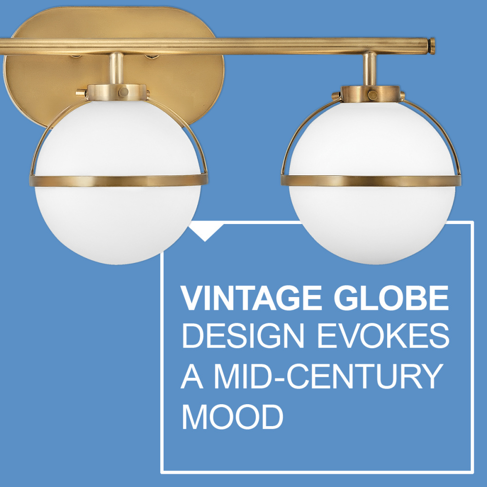 The distinctive vintage globe design of Hollis evokes a mid-century mood, yet its clean lines and sophisticated silhouette provide versatility for a variety of décors. Etched opal glass globes shine against a Heritage Brass or a Black finish.
