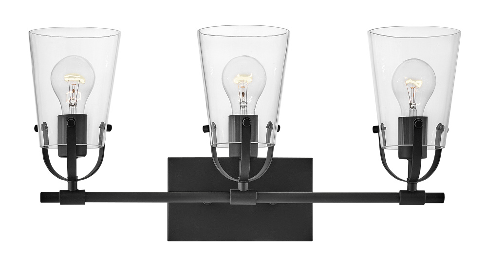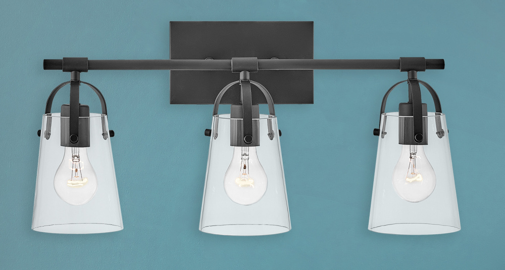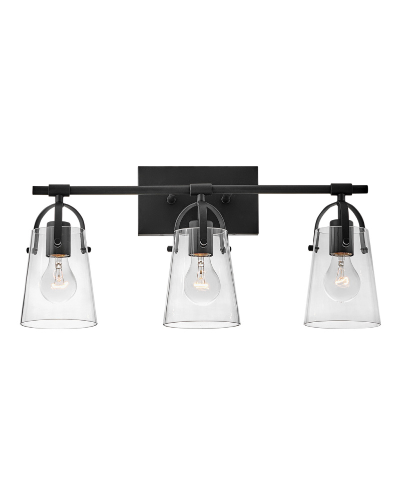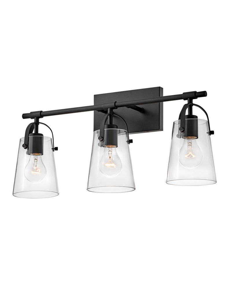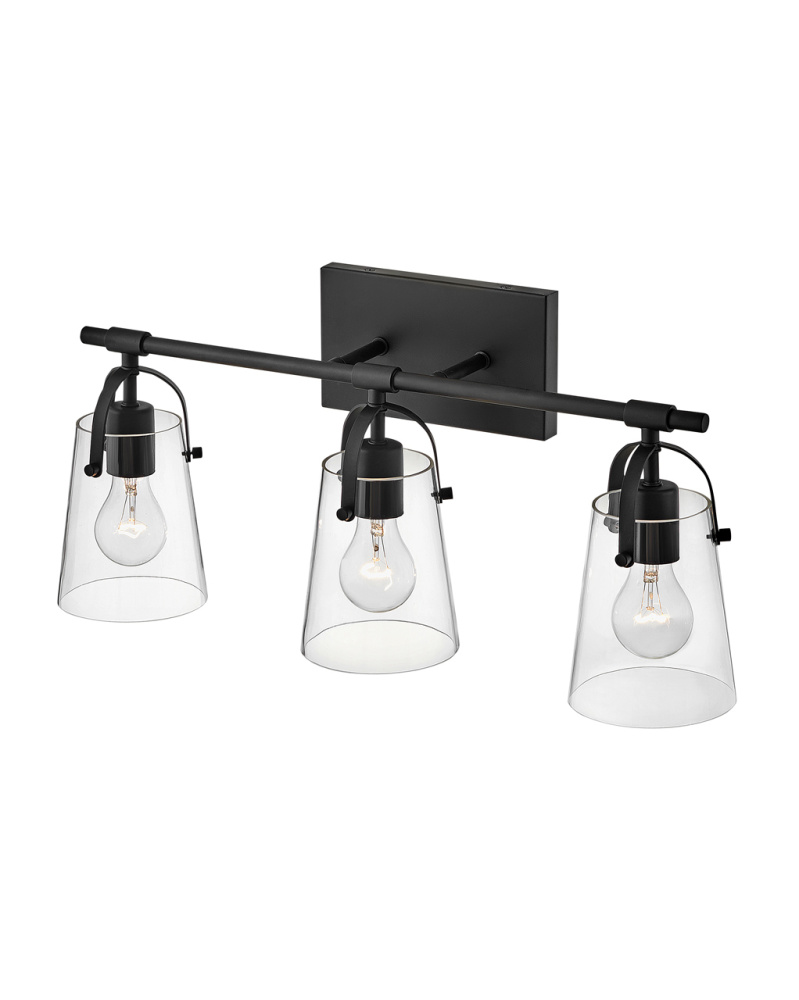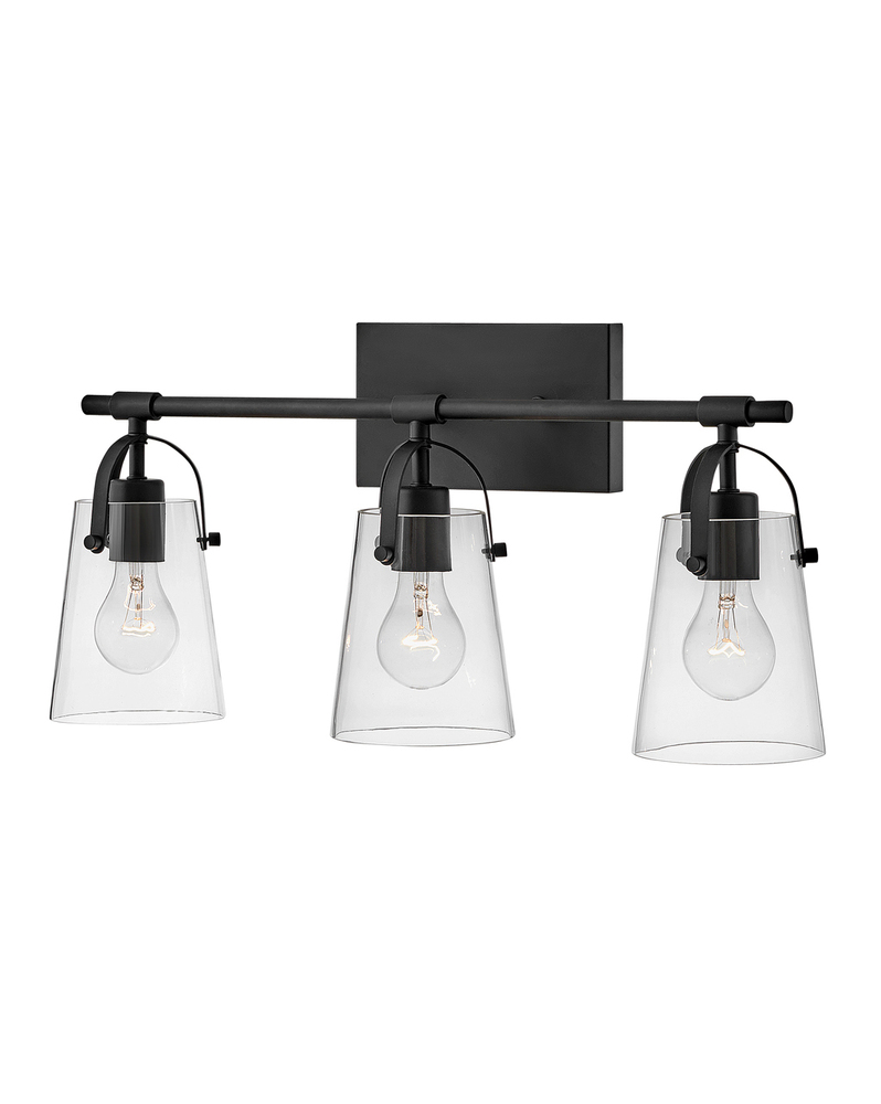 Clean and airy, Foster breathes composed simplicity into any bath space. Softly tapered glass shades suspended from arched handle prongs create a sophisticated transitional silhouette, enhanced by practical yet stylized details.