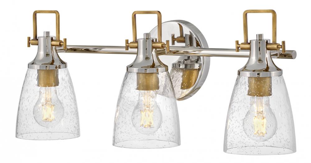 With style elements that blend both hip and historical, Easton exudes a modern industrial vibe. Bold, clear seedy glass shades pair with a distinctive top yoke and vintage-inspired knobs for a robust silhouette.