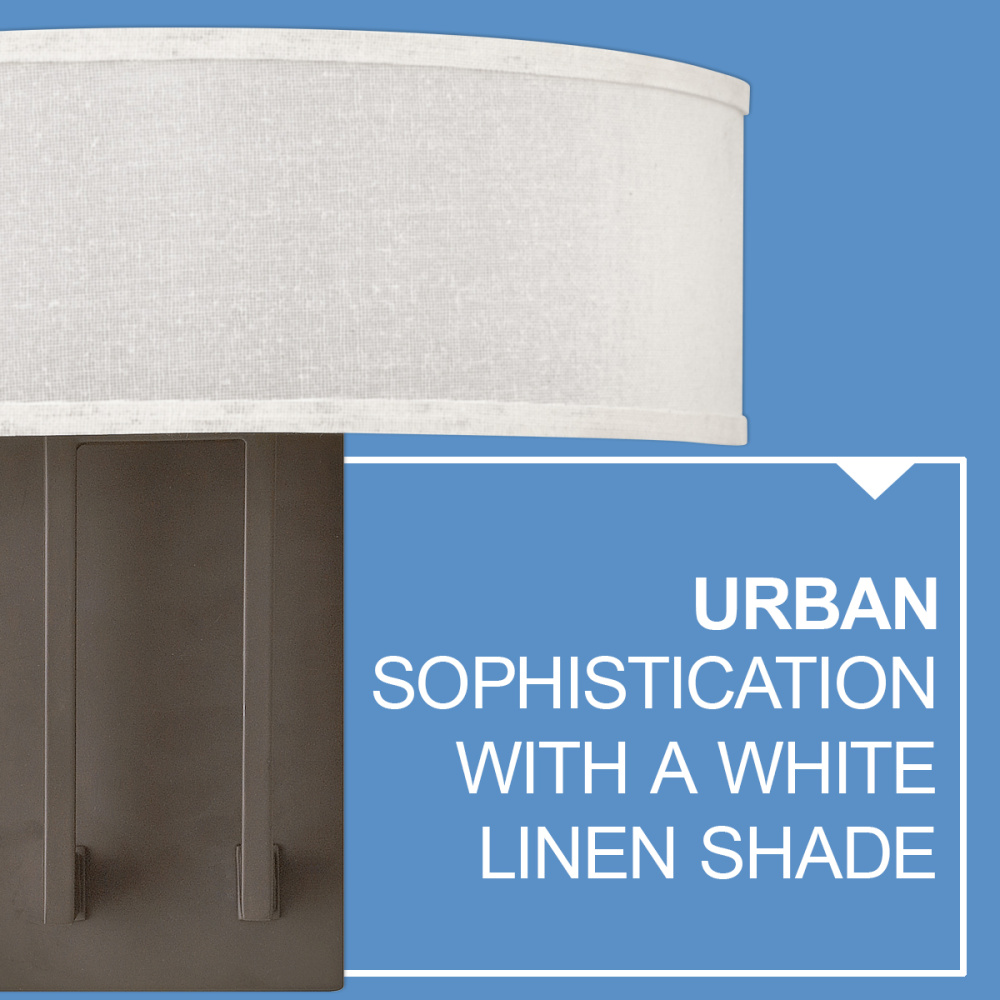Hampton is a modern transitional design, offering the ultimate in urban sophistication. The minimal, rectangular frame is softened by a contemporary off-white linen drum shade.