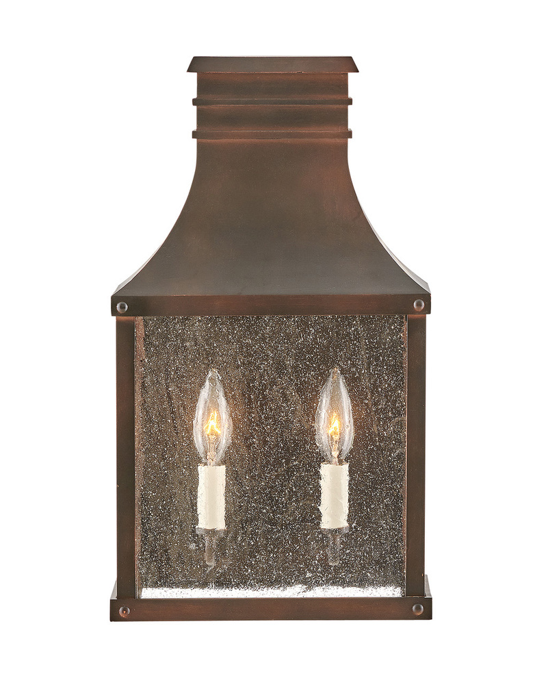 Taking inspiration from an English lantern, Beacon Hill achieves a timeless aesthetic. Part of the Heritage collection, this traditional style features a striking Blackened Copper or Museum Black aluminum frame. The heavily seeded glass pays homage to its Old World charm.