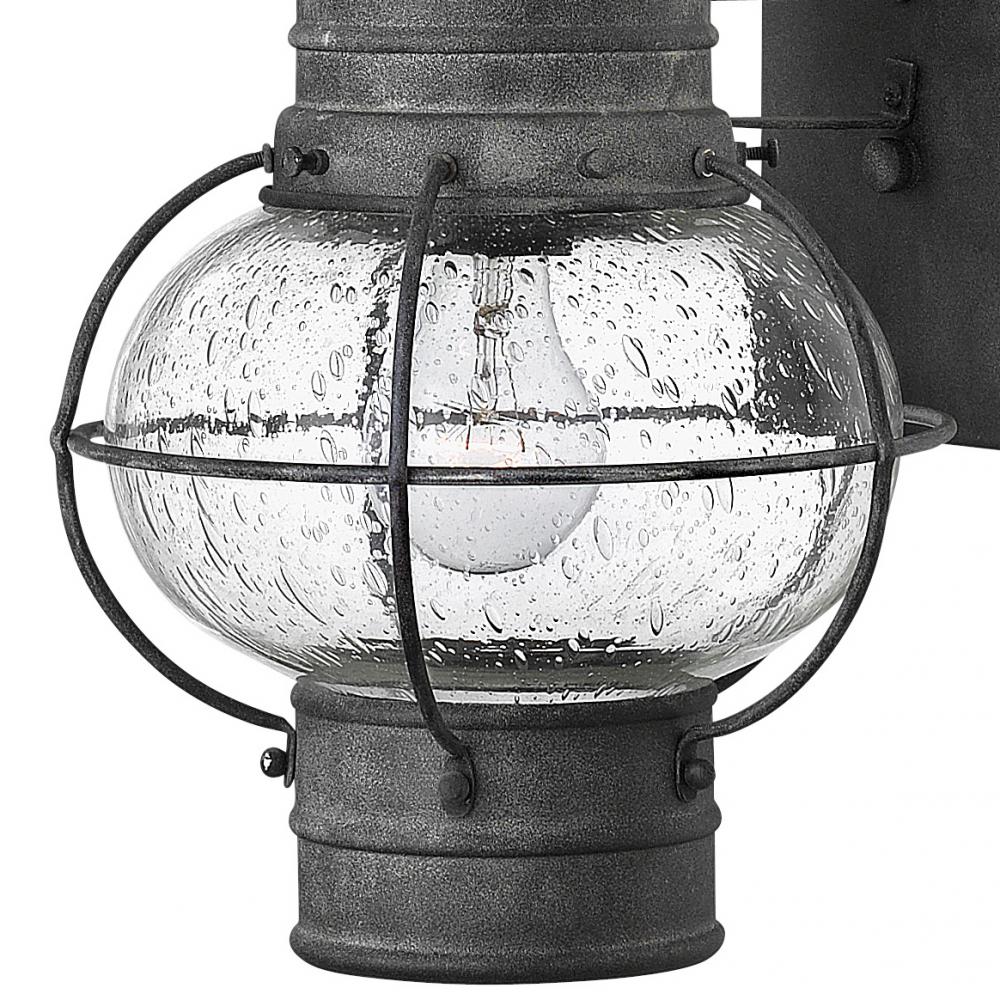Cape Cod’s classic onion lantern design conveys New England style. Bold caged lines highlight the sturdy profile, while the clear seedy glass adds to the vintage appeal.
