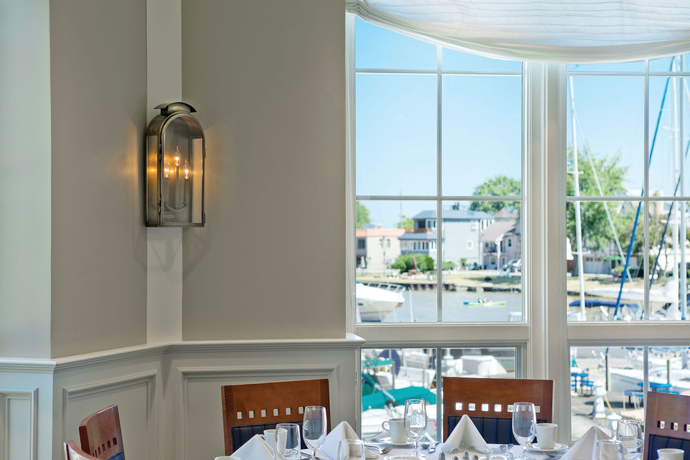 A stunning, rounded silhouette and arched roof composed of solid brass make Rowley a design standout. Weaving elements of classic Americana and industrial flair into a chic design with timeless appeal, this style features generous panes of clear glass and a functional front door for ease of bulbing.