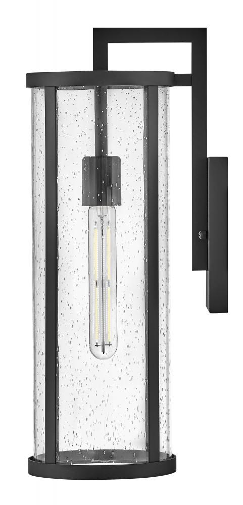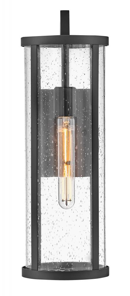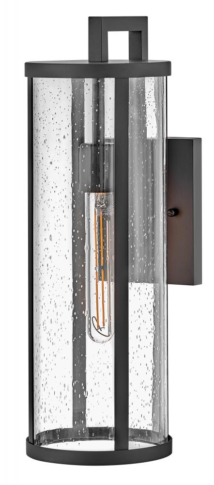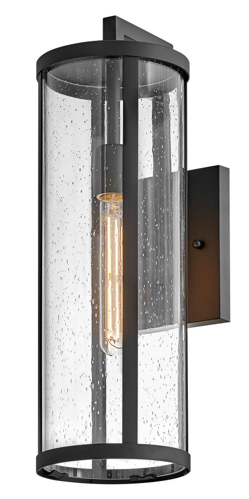Alfie boosts curb appeal with effortless style. This transitional wall mount lantern features an easy-on-the-eyes cylindrical profile, bold Black metal frame and sizable clear seedy glass finessed to flatter any exterior. Pro tip: we recommend vintage filament bulbs to make Alfie really shine.