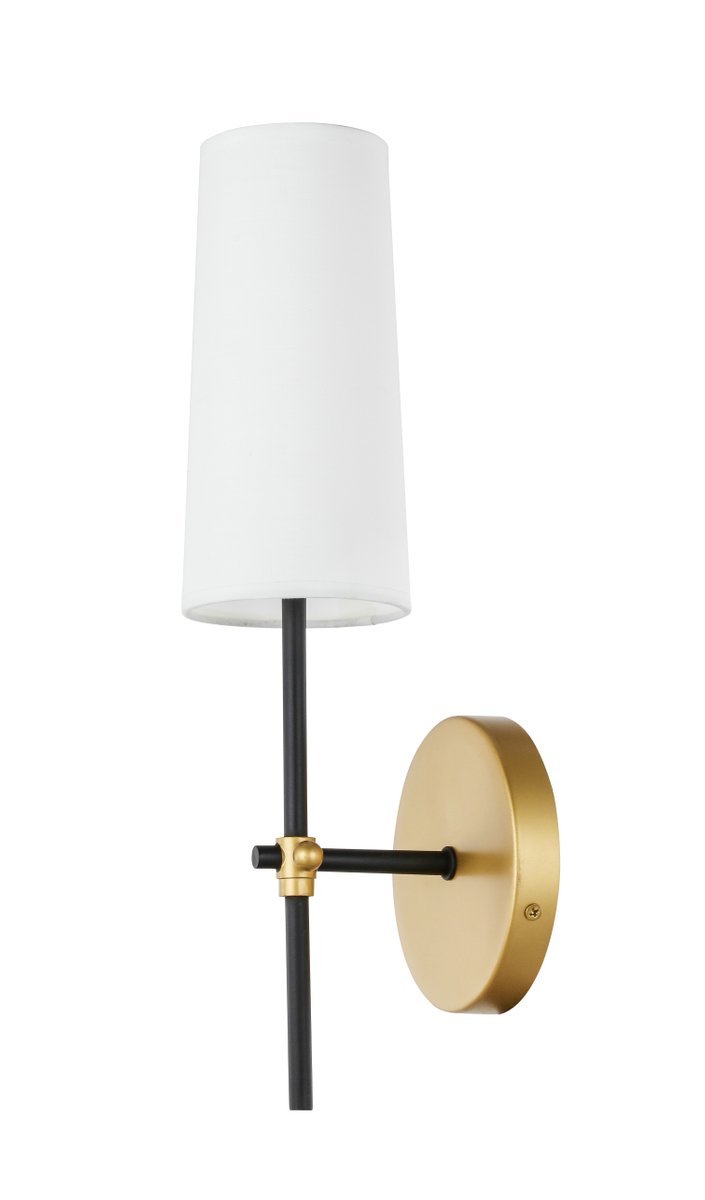 The Mel Collection of wall lamps adds refined simplicity to your life. Its unassuming design is versatile to blend in with any décor, but the sleek rod and clean linen shade adds contemporary elegance and style. Adding a breath of fresh air, this wall lamp, available in a black, polished nickel, or a two-toned brass and black finish, is the perfect addition to your bathroom or entryway (light bulbs not included).