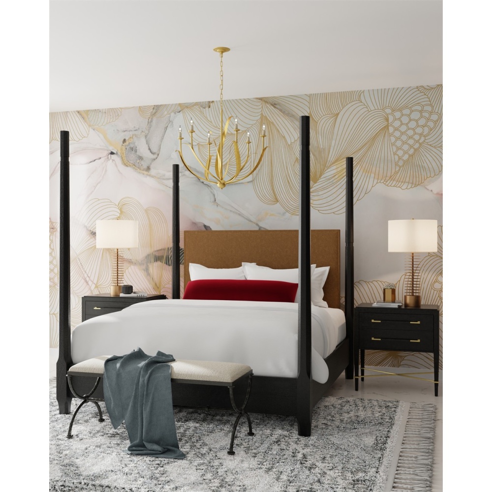 The Menefee Chandelier has swirls of long, slender leaves made of wrought iron in an antique gold leaf finish, which makes the metal gleam. This graceful gold chandelier is one of our offerings that illustrates the dexterity of our artisans, who make this resolute material feel so fluid. Adjustable from 34.5" to 102.5" with use of included chain/rod kit/cable. If your space calls for a longer drop, additional chain/rods/cable is available for purchase.