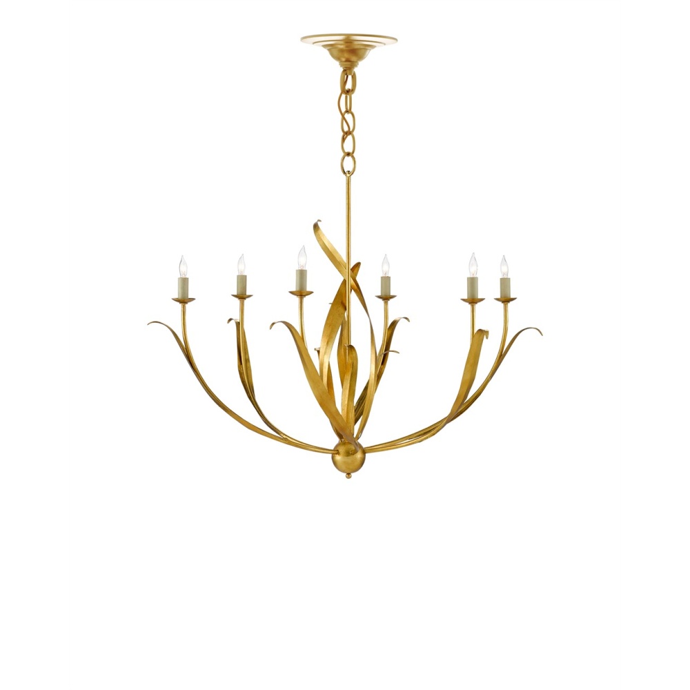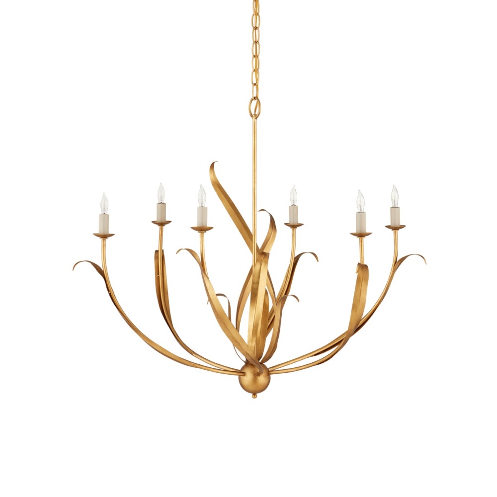 The swirl of long, slender leaves waving in a balmy summer breeze is called to mind when the lights of our Menefee Chandelier are switched on. Adding to the ruse that this is a light fixture meant only for summer is the antique gold leaf finish that makes the wrought iron gleam like a late evening sunset. But this graceful chandelier will be just as welcoming in the winter months effervescing above any space that could use a bit of warmth.