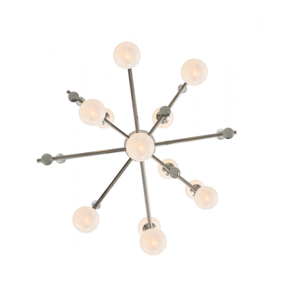 Mid-Century Modern inspired design featuring crystal accents and polished nickel finish. G9 LED lamps included.