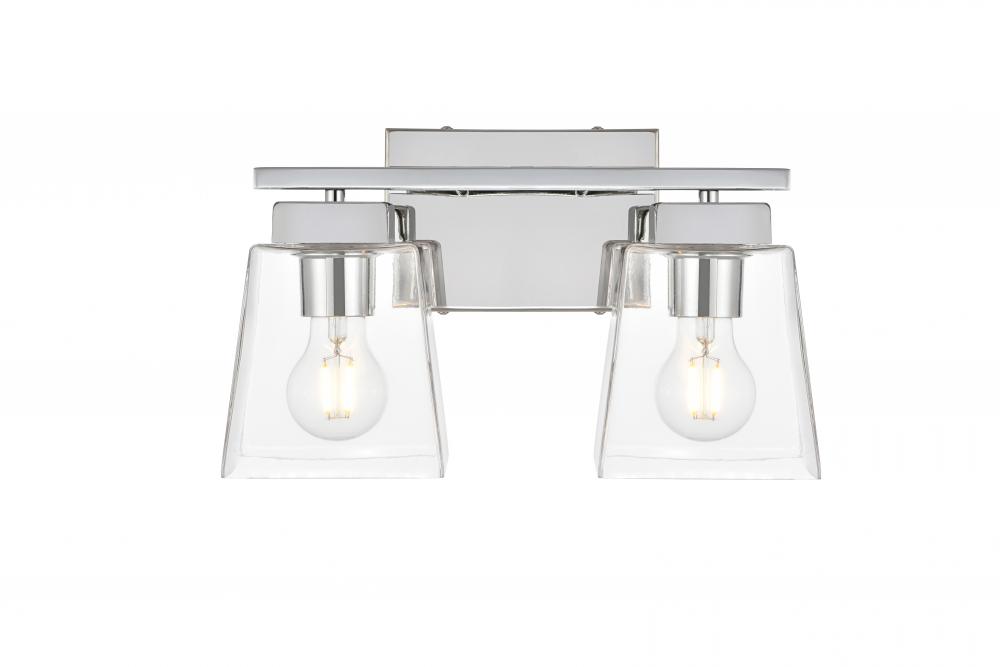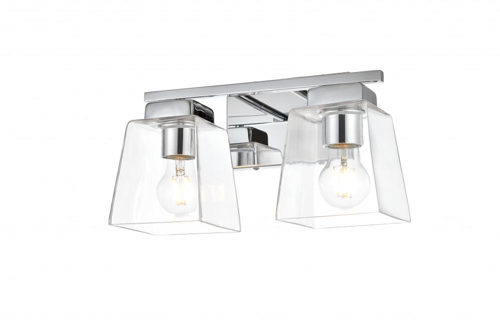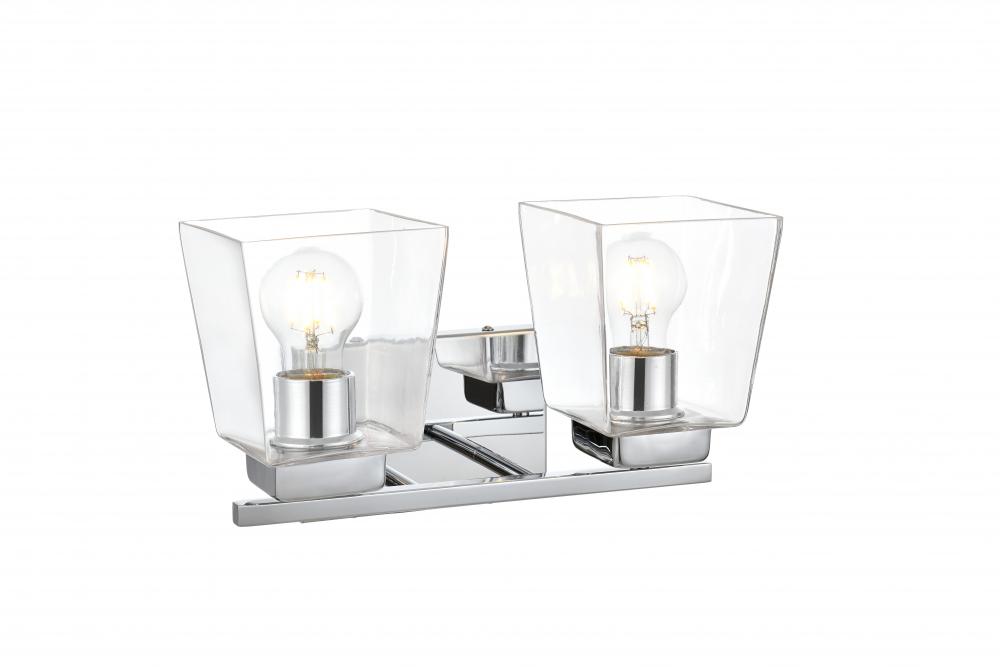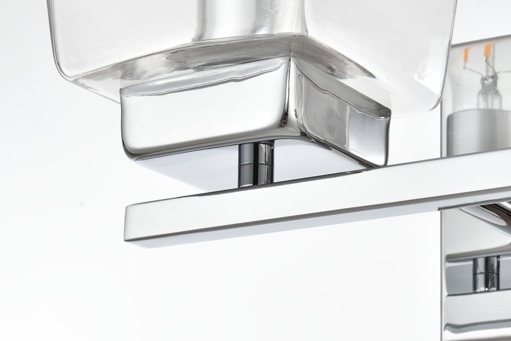 Defined by a sleek metal arm extends to suspend the clear bell glass shade. A contemporary stunner, it shows off the straight line details from the backplate and the streamline thin metal arm. Compatible with dimmers, so you'll have the right amount of light in any given time of the day. Completely versatile, you can place this wall light as an uplight or downlight. Rated for use in damp locations, this will work perfectly over a vanity in your bathroom.