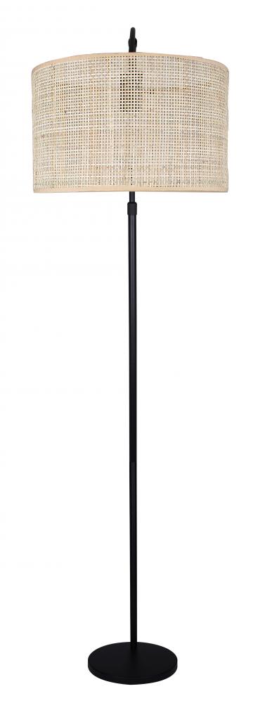 Merritt 1 Light Floor Lamp with Matte Black Finish and Natural Rattan Shade
