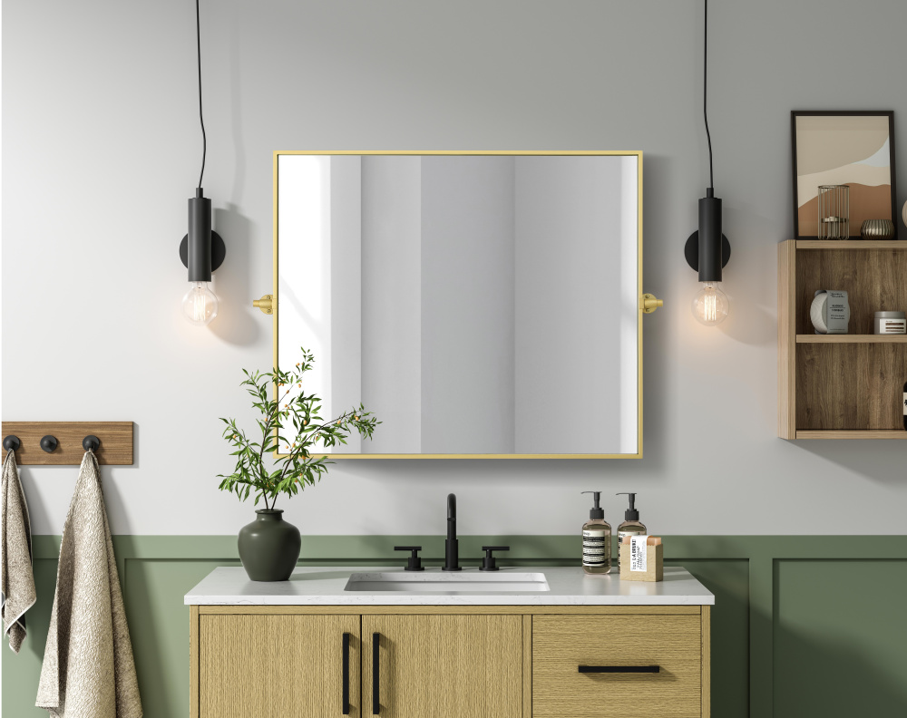 Upgrade your space with a modern pivot mirror that offers both form and function. Featuring an adjustable 8-degree tilt, this mirror allows you to customize your viewing angle for convenience and style. The iron frame with MDF backing ensures durability, while the hand-painted finish—available in black, silver, and brass—adds a touch of sophistication. Designed for versatility, this rectangular mirror can be mounted vertically or horizontally, making it the perfect fit for bathrooms, bedrooms, offices, and more. Its slim metal frame provides a sleek, contemporary aesthetic that blends seamlessly into various design styles. With included mounting brackets and screws, installation is simple and secure, giving your space an instant refresh. Whether you’re getting ready for the day or enhancing your home décor, this pivot mirror delivers both style and practi