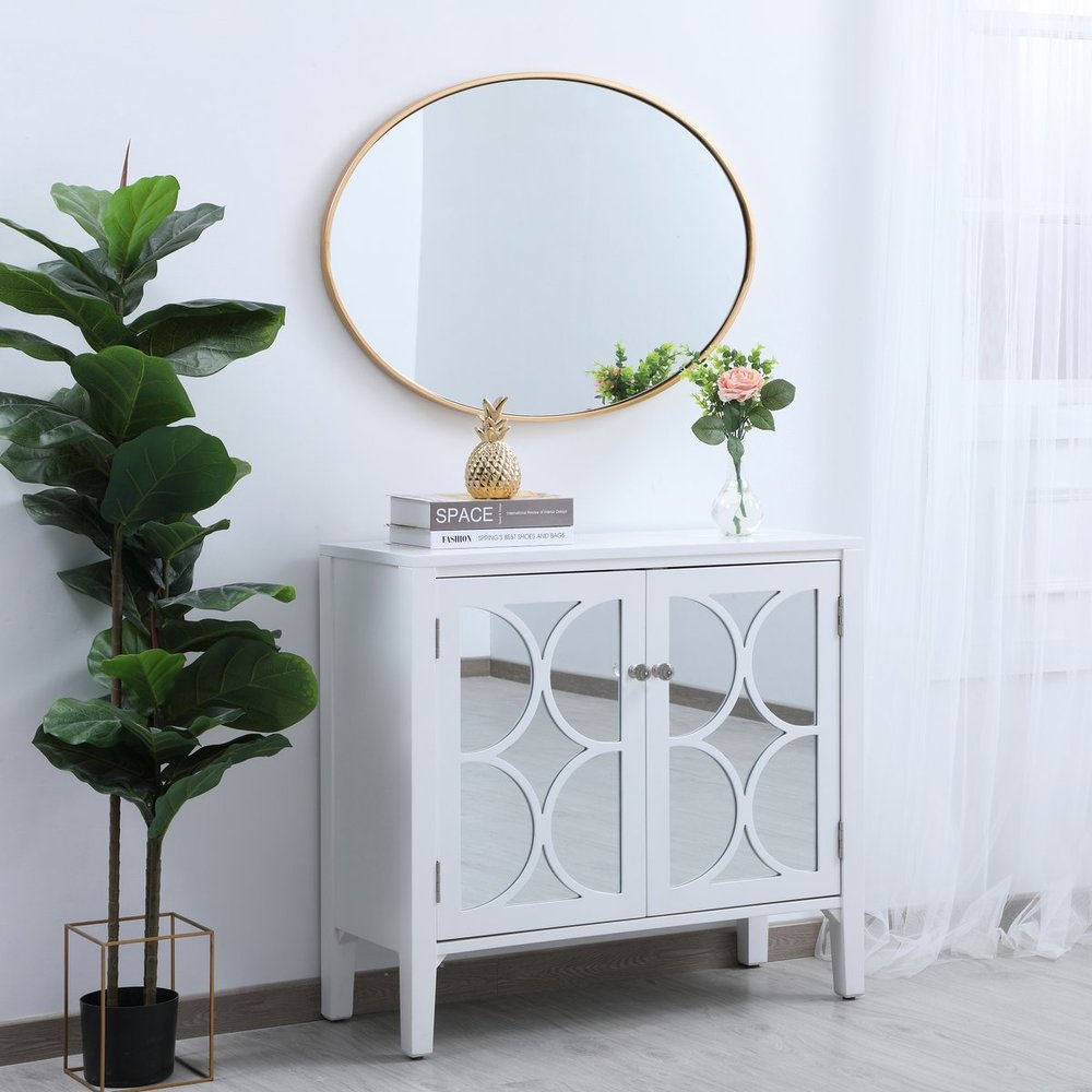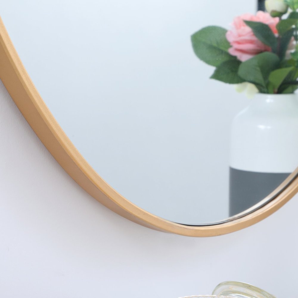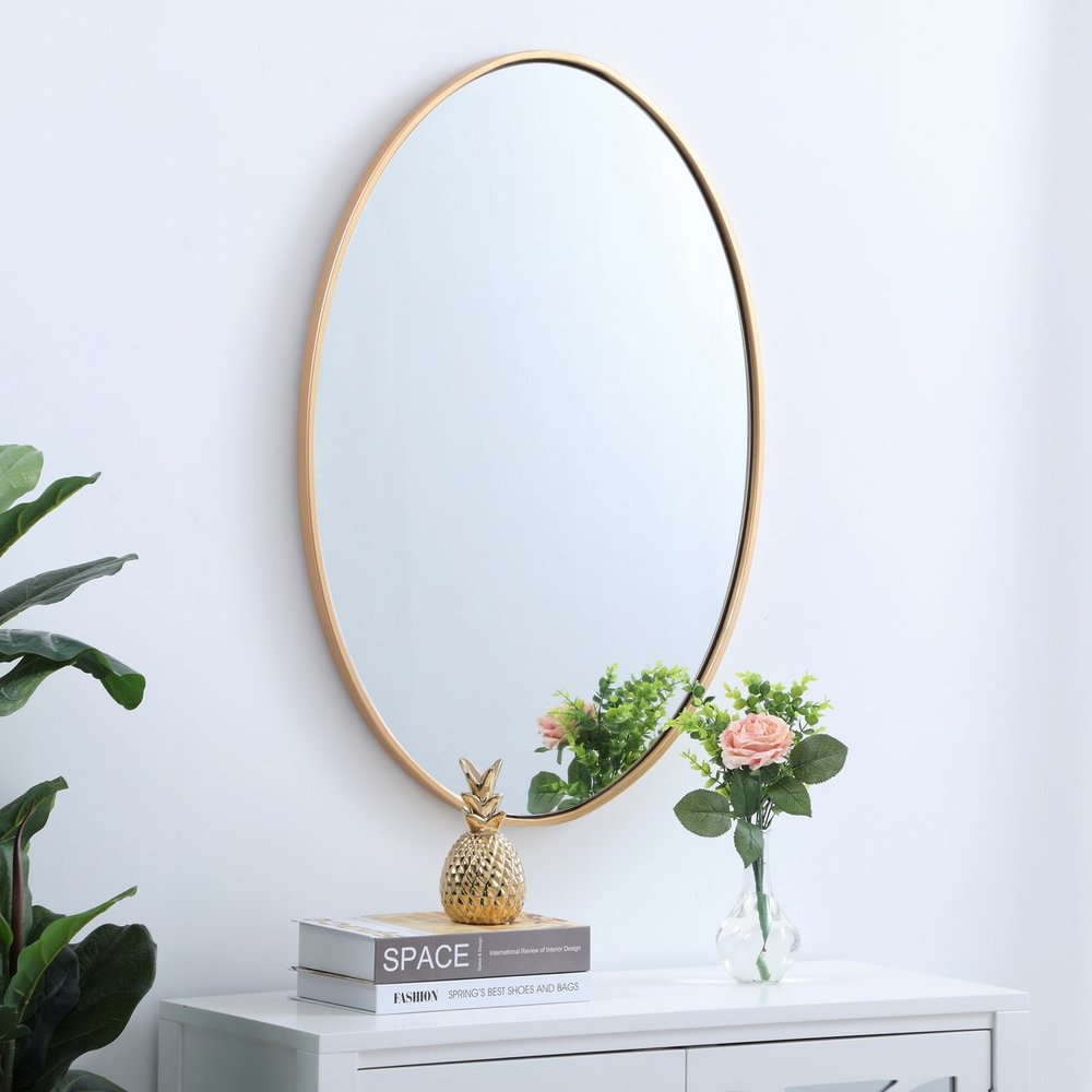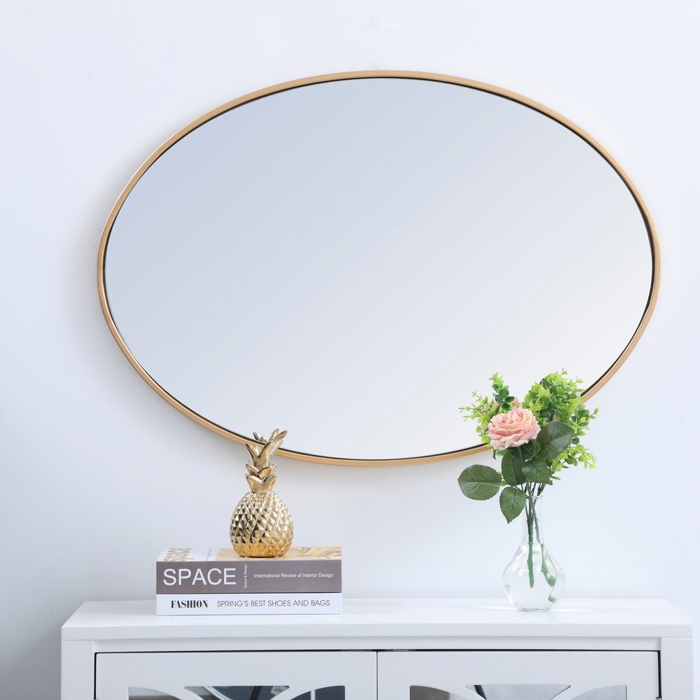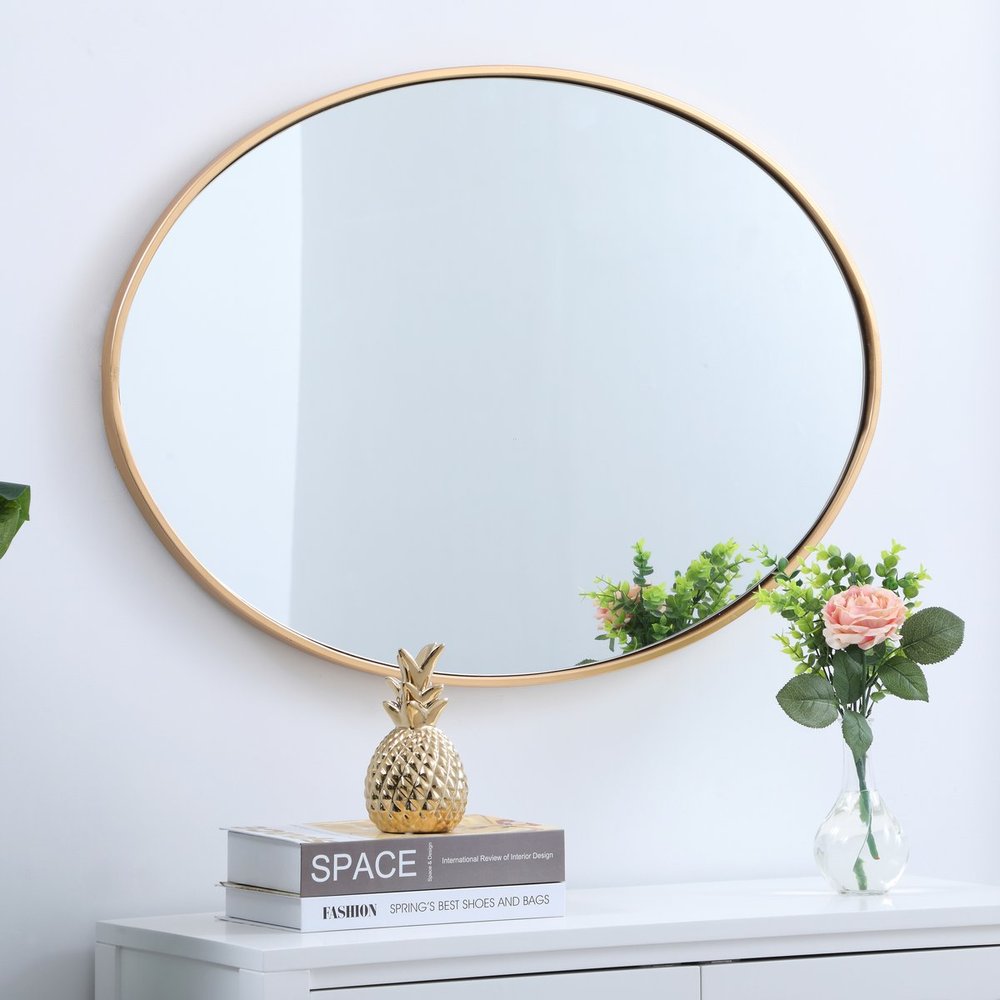 The rounded style of this mirror gives a soft edge to any room. A dreamy oval shape adds modern minimalism while expanding the visual space of your room, and the ability to hang it horizontally or vertically adds to its style versatility. The metal edge will surely compliment your home and add artful and modern sophistication. Available in a black, brass or Silver finish and comes in a variety of sizes--it's the perfect mirror for any sized home.
