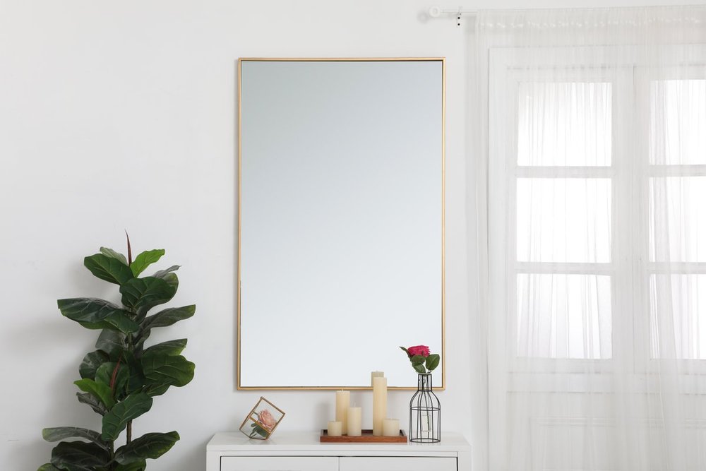 Add elegance and simple form into your home while expanding visual space. This versatile rectangular mirror can be oriented vertically or horizontally, and its slender metal frame comes in a black, brass, or Silver finish. Available in a variety of sizes, this mirror offers you a plethora of design options--whether it overlooks your home in the foyer, bathroom, or bedroom, its stylish modernity will please all.