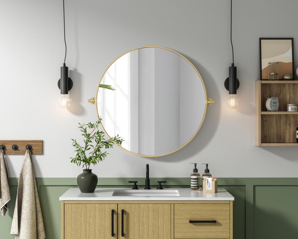Elevate your space with the perfect blend of form and function—this sleek pivot mirror is designed to move with you. Crafted from durable iron with a sturdy MDF backing, it offers both stability and style. The 8-degree adjustable pivot allows for a customized viewing angle, making it ideal for bathrooms, bedrooms, and beyond. Finished with a hand-painted touch, this mirror is available in three elegant shades: black, silver, and brass, effortlessly complementing a range of interior aesthetics. Its modern round silhouette brings a timeless, minimalist appeal, making it a versatile piece for any room—whether placed in a living room, office, or entryway. Designed for effortless installation, this mirror comes with all necessary mounting brackets and screws, so you can upgrade your space in minutes. Whether you're seeking a functional bathroom essential or a sophisticated statement piece, this adjustable pivot mirror delivers in both style and practical