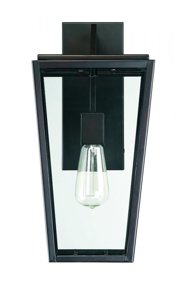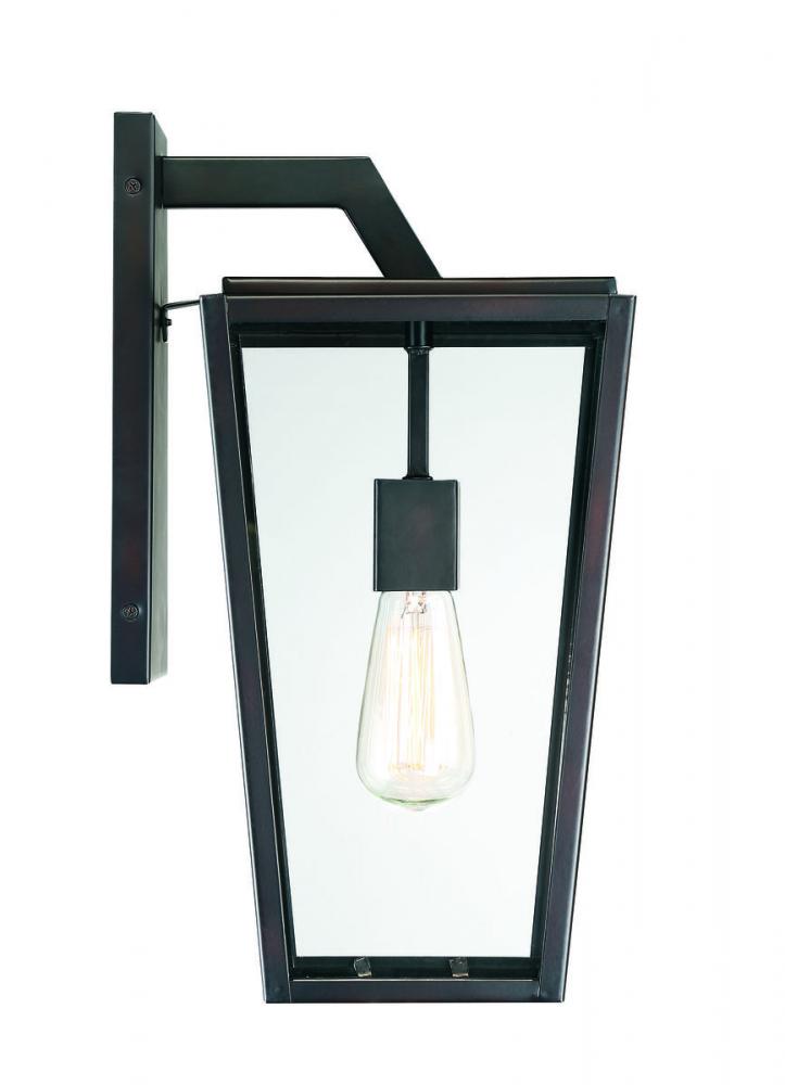 Sleek, contemporary and welcoming light is all yours with the Savoy House Milton 1-light outdoor wall lantern. It’s a fresh, modern take on a classic tapered-box lantern with clean lines and an angular, geometric silhouette. The streamlined frame has a rich English bronze finish and pristine panes of clear glass. It’s an impeccable complement to other hardware and materials on the exterior of your home. Within the lantern panels, one 60W standard size bulb illuminates the area. Milton measures 8" wide and 16.5" high and extends 9.5" from the wall, making it perfect to add chic lighting to the walls of your patio, porch, sunroom or other outdoor living areas. Wet area rated.