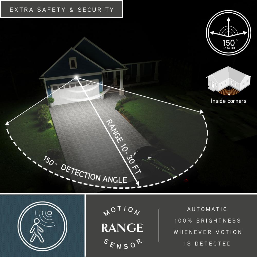 150 degree on demand motion sensor automatically turns on when movement is detected