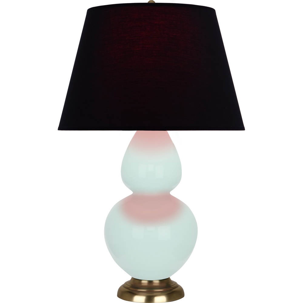 Mint Glazed Ceramic with Antique Brass Finished Accents Double Gourd Table Lamp with Ink Fabric Shade with Rose Red Lining - Our Double Gourd collection features a simple but gracefully curving silhouette. Available in a wide array of vibrant colors and several different base finishes.