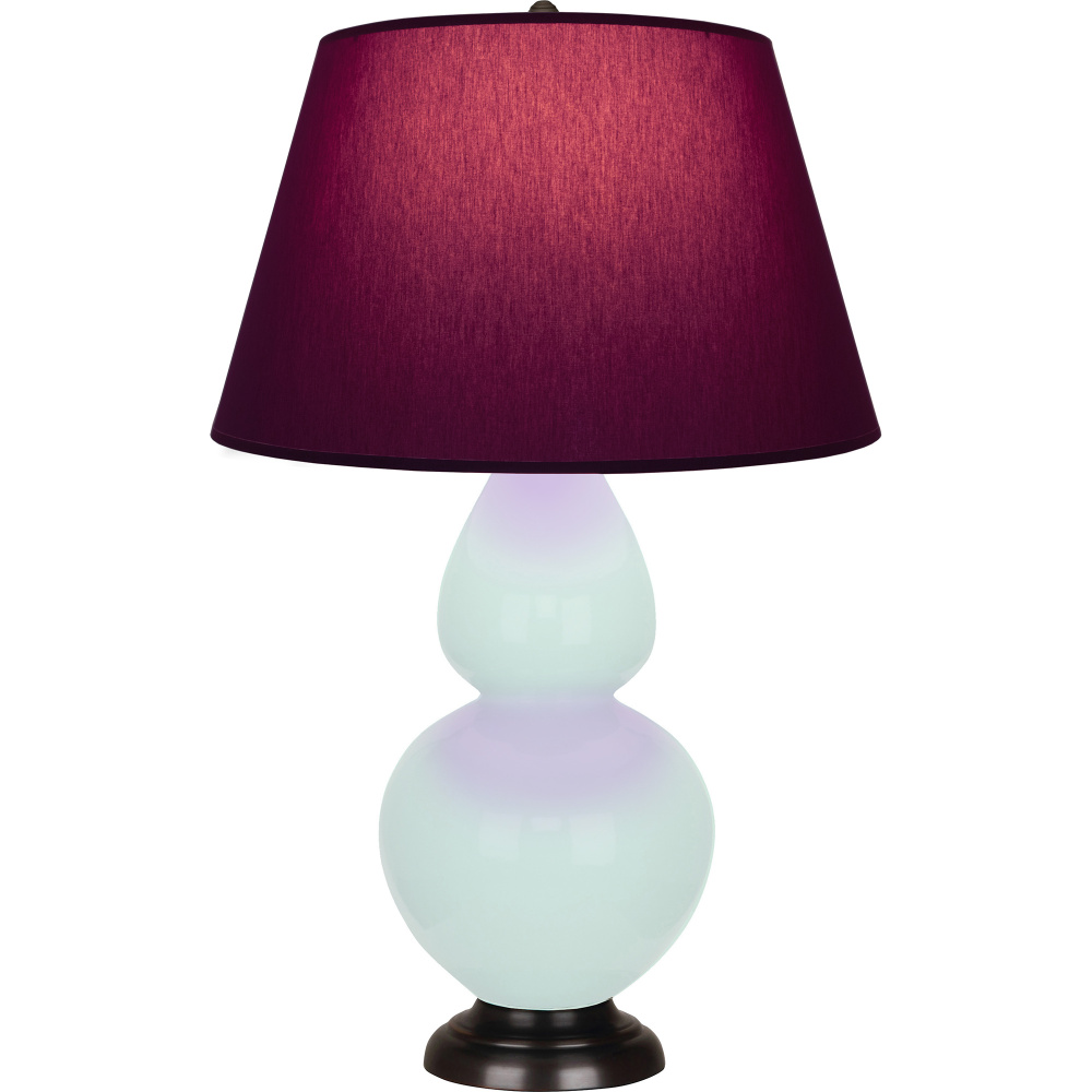 Mint Glazed Ceramic with Deep Patina Bronze Finished Accents Double Gourd Table Lamp with Plum Fabric Shade with Lavender Lining - Our Double Gourd collection features a simple but gracefully curving silhouette. Available in a wide array of vibrant colors and several different base finishes.
