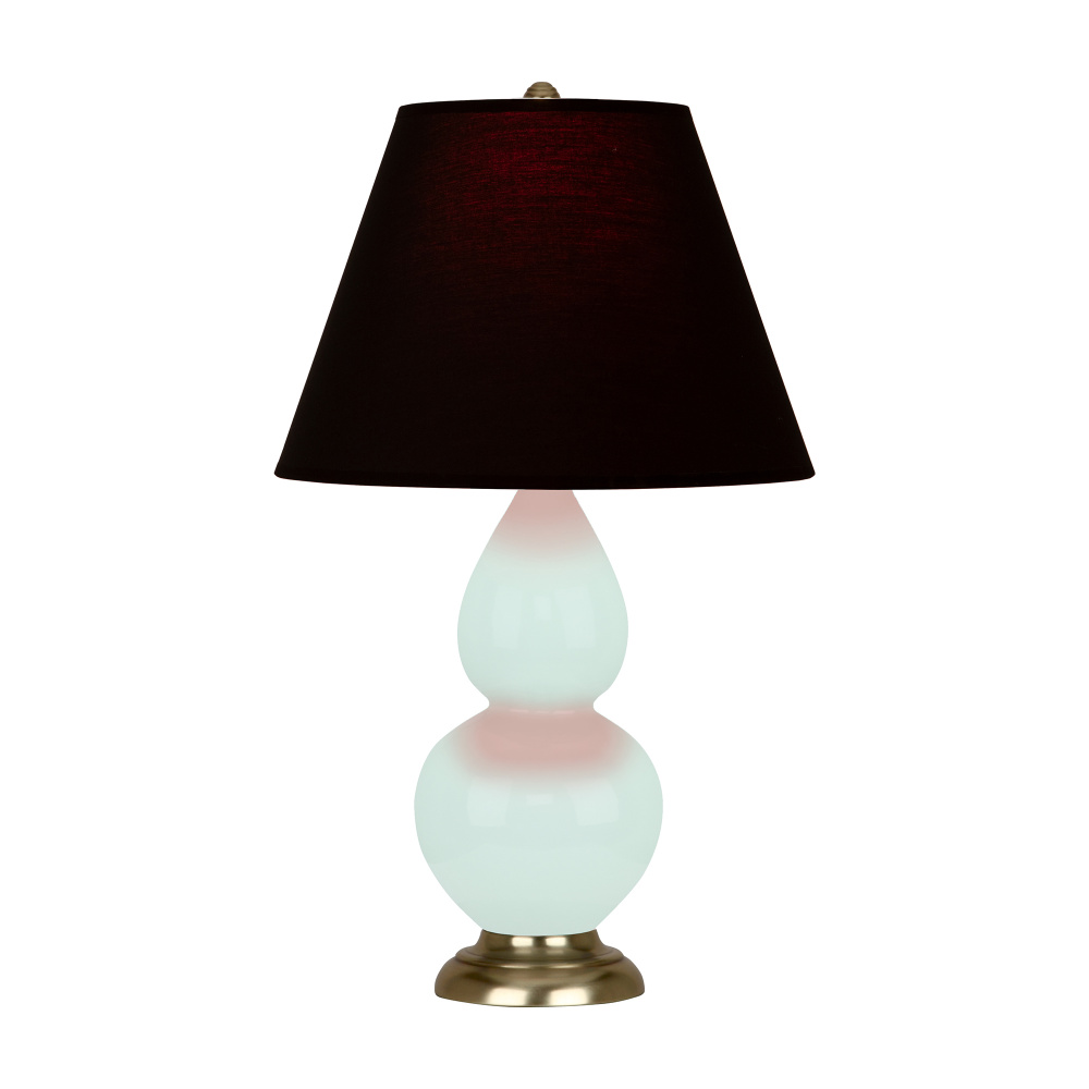 Mint Glazed Ceramic with Antique Brass Finished Accents Small Double Gourd Accent Lamp with Ink Fabric Shade with Rose Red Lining - Our Double Gourd collection features a simple but gracefully curving silhouette. Available in a wide array of vibrant colors and several different base finishes.