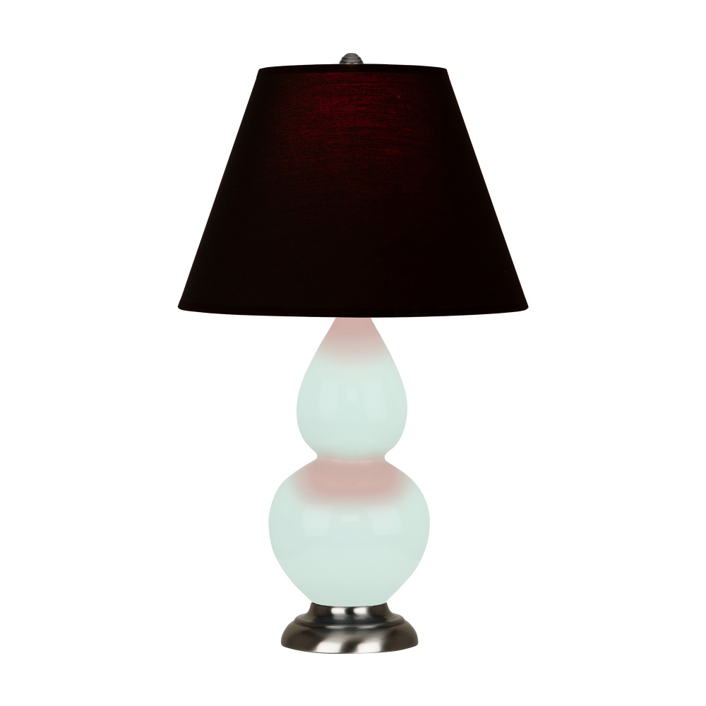 Mint Glazed Ceramic with Antique Silver Finished Accents Small Double Gourd Accent Lamp with Ink Fabric Shade with Rose Red Lining - Our Double Gourd collection features a simple but gracefully curving silhouette. Available in a wide array of vibrant colors and several different base finishes.
