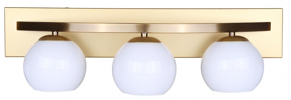 Canarm IVL1169A03GDP - MONROE 24 in. 3 Light Gold Vanity with White Glass Shade
