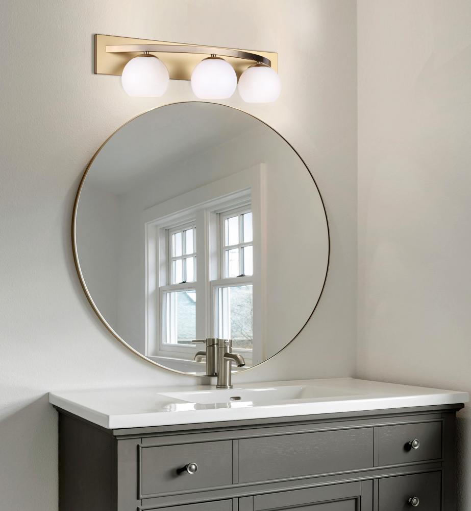Timeless Glamour: MONROE is a stunning 3-light vanity fixture designed to elevate your bathroom decor with timeless glamour. Featuring opal glass shades with a shiny finish, it exudes elegance and sophistication, enhancing the visual appeal of your space.