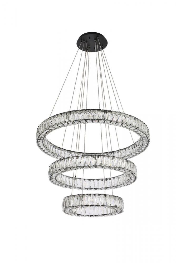 Monroe 32 inch LED triple ring chandelier in black