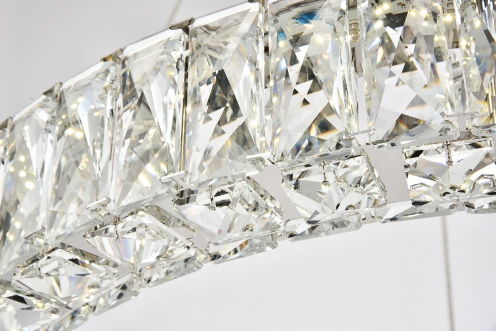 Diamonds are a girl’s best friend, and sparkling Monroe collection hanging fixtures take Marilyn’s famous lines to heart … for women and men alike. A minimal stainless-steel frame in a smooth chrome finish becomes dazzling when it is covered entirely with rectangular and square spectacularly faceted royal-cut clear crystals. The oblong design hangs from almost invisible wires with brilliant integrated LED shining unseen from within. Stunning when placed in a dining room, kitchen, living room, or bedroom.