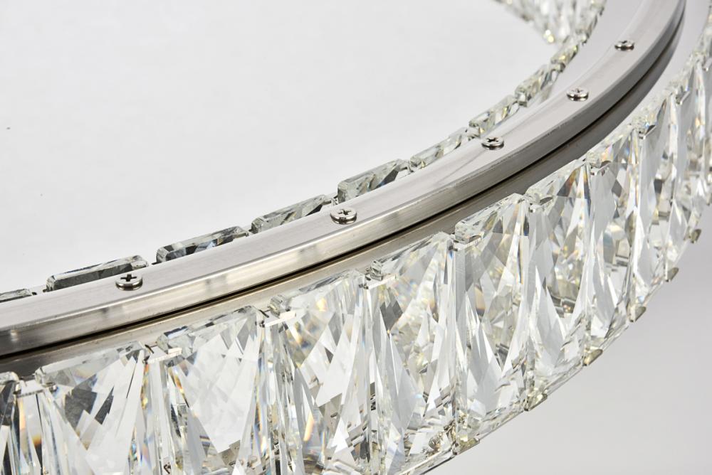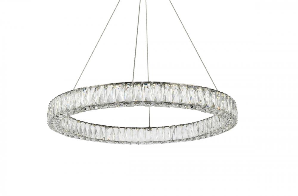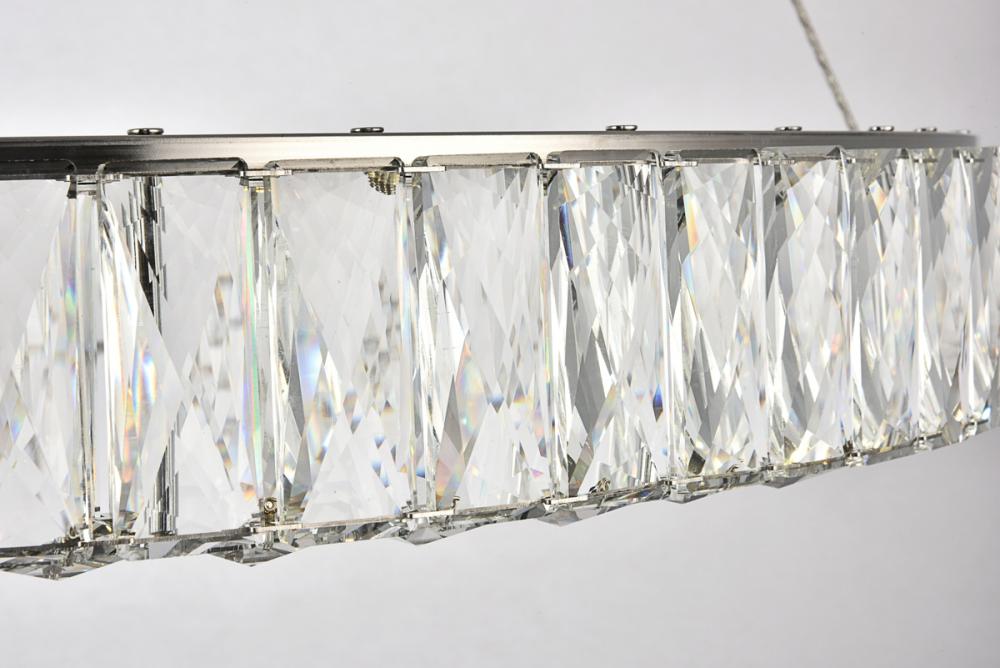 Diamonds are a girl’s best friend, and sparkling Monroe collection hanging fixtures take Marilyn’s famous lines to heart … for women and men alike. A minimal stainless-steel frame in a smooth chrome finish becomes dazzling when it is covered entirely with rectangular and square spectacularly faceted royal-cut clear crystals. The oblong design hangs from almost invisible wires with brilliant integrated LED shining unseen from within. Stunning when placed in a dining room, kitchen, living room, or bedroom.