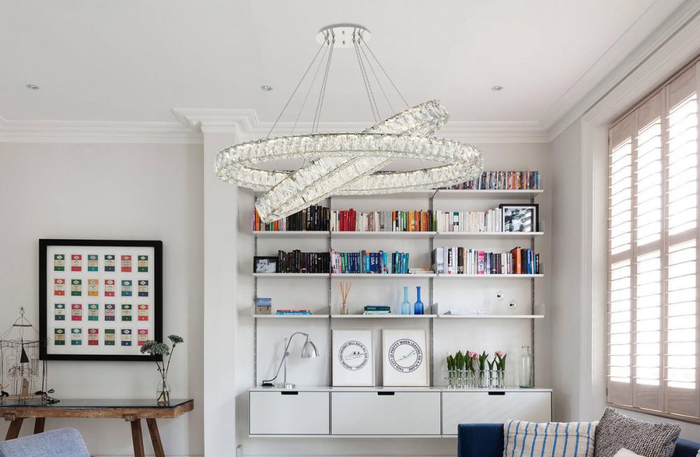 Diamonds are a girl’s best friend, and sparkling Monroe collection hanging fixtures take Marilyn’s famous lines to heart … for women and men alike. A minimal stainless-steel frame in a smooth chrome finish becomes dazzling when it is covered entirely with rectangular and square spectacularly faceted royal-cut clear crystals. The oblong design hangs from almost invisible wires with brilliant integrated LED shining unseen from within. Stunning when placed in a dining room, kitchen, living room, or bedroom.