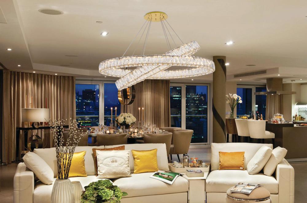Diamonds are a girl’s best friend, and sparkling Monroe collection hanging fixtures take Marilyn’s famous lines to heart … for women and men alike. A minimal stainless-steel frame in a smooth gold finish becomes dazzling when it is covered entirely with rectangular and square spectacularly faceted royal-cut clear crystals. The oblong design hangs from almost invisible wires with brilliant integrated LED shining unseen from within. Stunning when placed in a dining room, kitchen, living room, or bedroom.