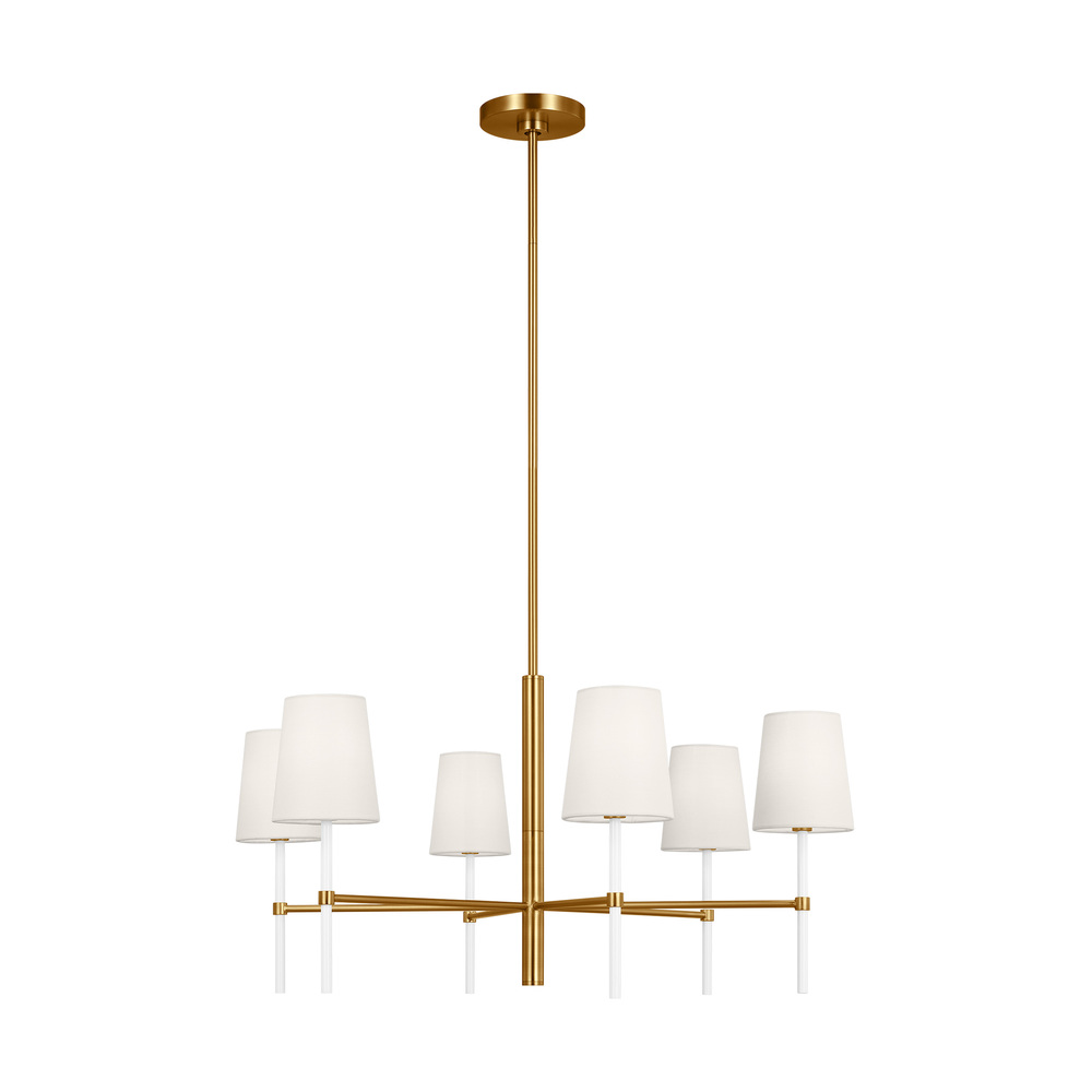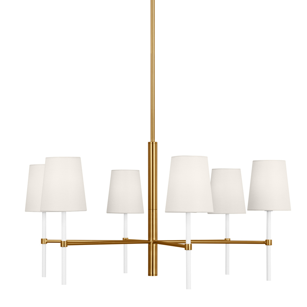 The Monroe medium chandelier is inspired by graphic enameled metal jewelry and decorative accessories from kate spade with a nod to late 50s atomic era colorful designs. Monroe exhibits clean lighting profiles and dressed them up with painted sections and metal accents.