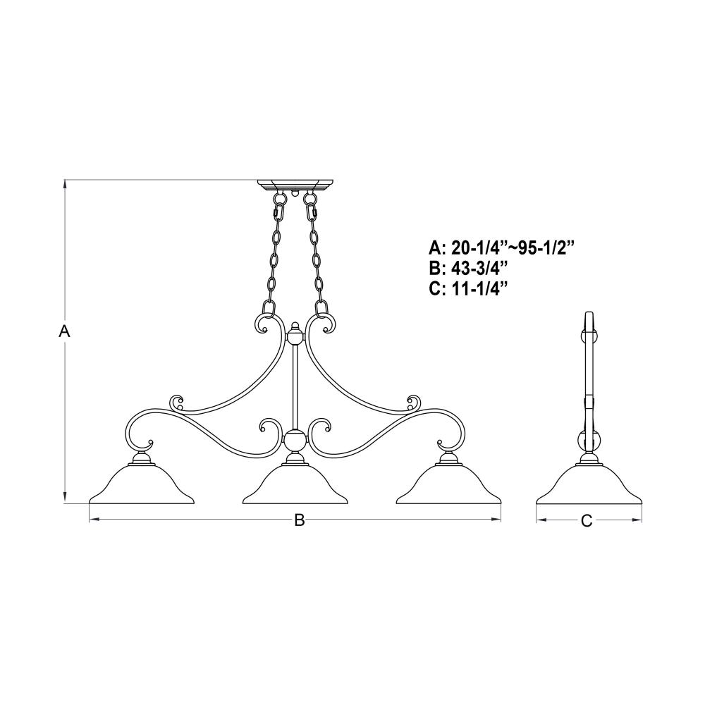 Adjustable height; 20.25-95.5 inches using 72 inches of included chain