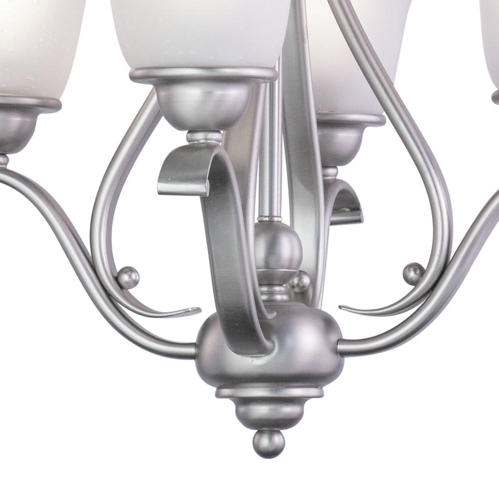 The soft traditional lines of the Monrovia collection allow you to combine styles within your home without compromising on design. The brushed nickel finish and white frosted seeded glass add a certain level of sophistication and elegance that is rare to achieve. Update your look with a hint of class. This fixture is part of a full collection with coordinating pieces to decorate any room in the house. This versatile fixture can be installed two ways; mount as a semi flush ceiling light or use the chain to mount as a mini chandelier. Pull chain on-off switch or wall switch controlled.