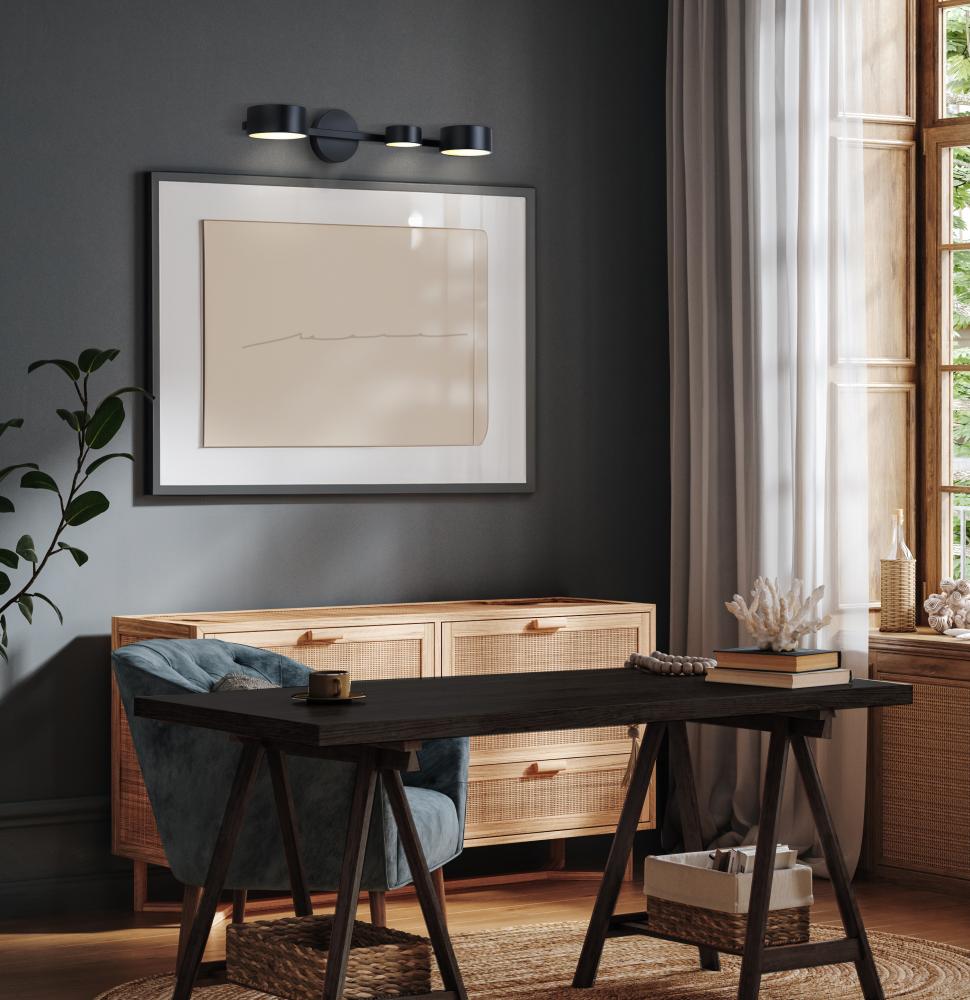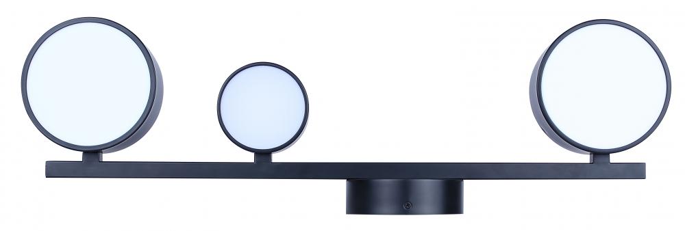 MONTGOMERY, LWF315A03BK, MBK Color, 3 Lt LED Wall Fixture, Acrylic, 33W LED (Integrated), Dimmable, 3000K 1750Lumens, 4000K 1800Lumens, 5000K 1750Lumens 3CCT Switch, 27.875inch W x 5.125inch H x 8.375inch D