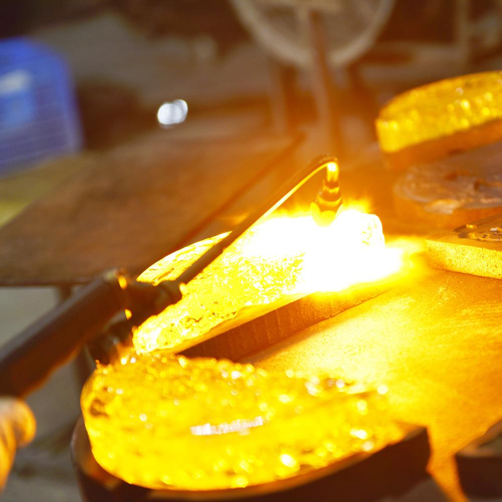 One-of-a-Kind Craftsmanship Features crescent-shaped panels made from individually handcrafted, textured glass for a unique, artistic statement.
