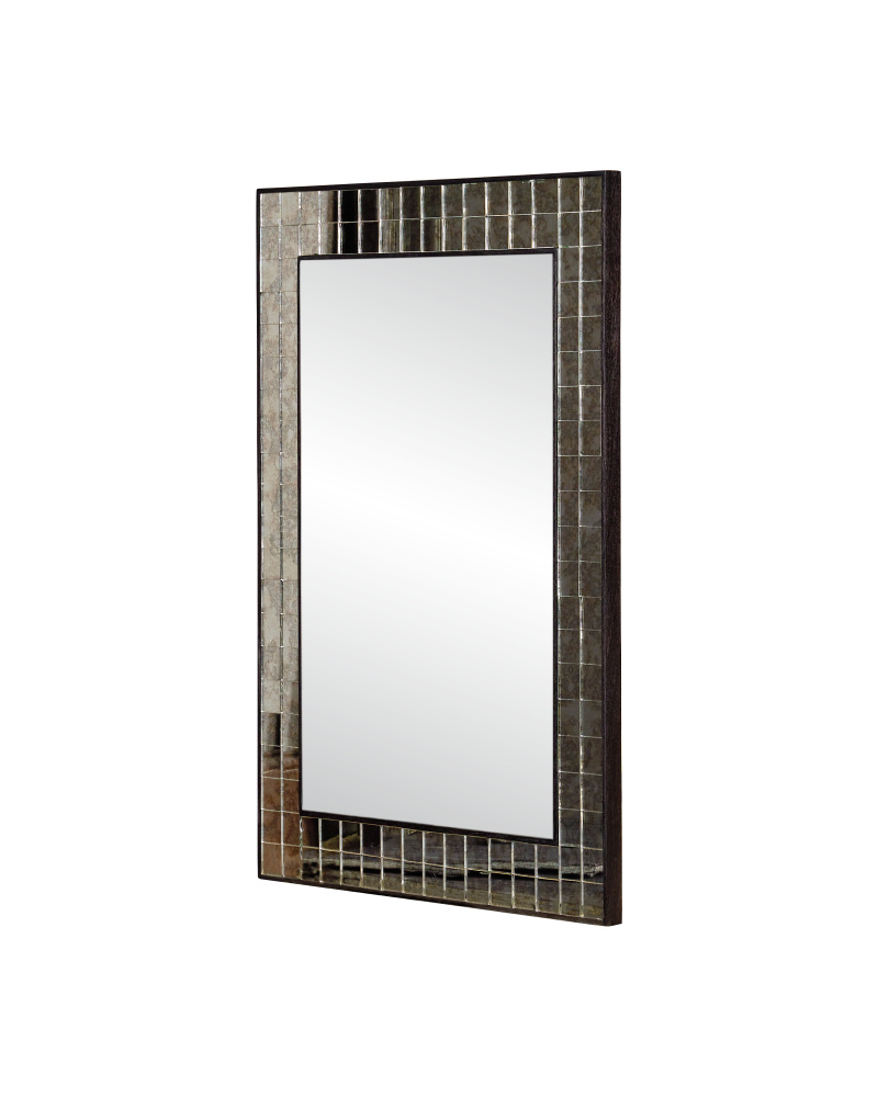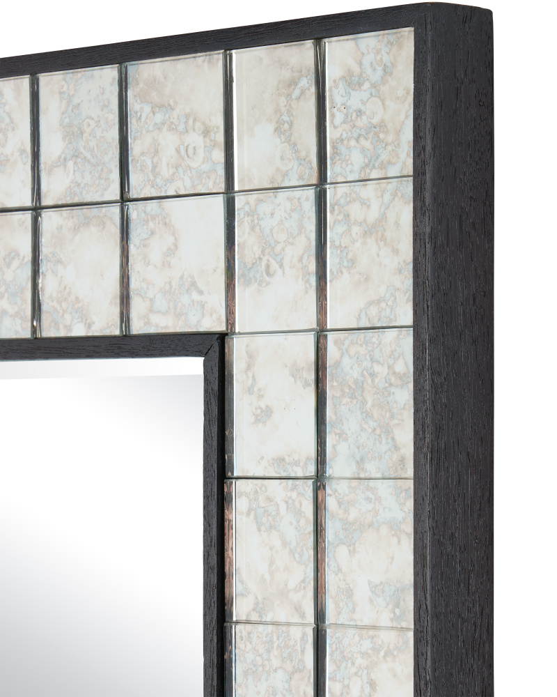 The Mosaico Rectangular Mirror blends texture, craftsmanship, and timeless style. Its frame holds a mosaic of antique mirror tiles that are individually hand-placed to fit seamlessly in the black wood form. With its generous proportions, it comes with hanging cleats that allow it to be hung vertically or horizontally.