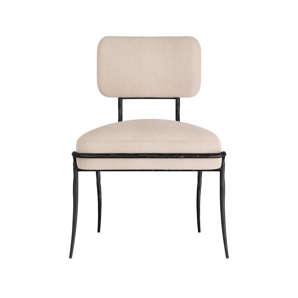 SLEEK, STYLISH AND EFFORTLESSLY ELEGANT, THIS CLASSIC NATURAL LINEN CHAIR WITH BLACKENED IRON LEGS WORKS WITH ANY AESTHETIC. USE EN MASSE AROUND A TRADITIONAL DINING TABLE, OR PULL A PAIR UP TO A BANQUETTE SEATING AREA. USE AS A HALL OR DESK CHAIR, FLANK A CONSOLE OR FIREPLACE WITH A PAIR. WORKS WELL IN FORMAL OR INFORMAL ROOMS.