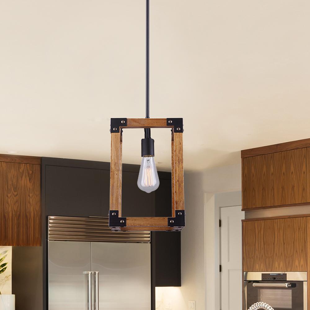 Moss 1 Light Pendant, Wood Finish