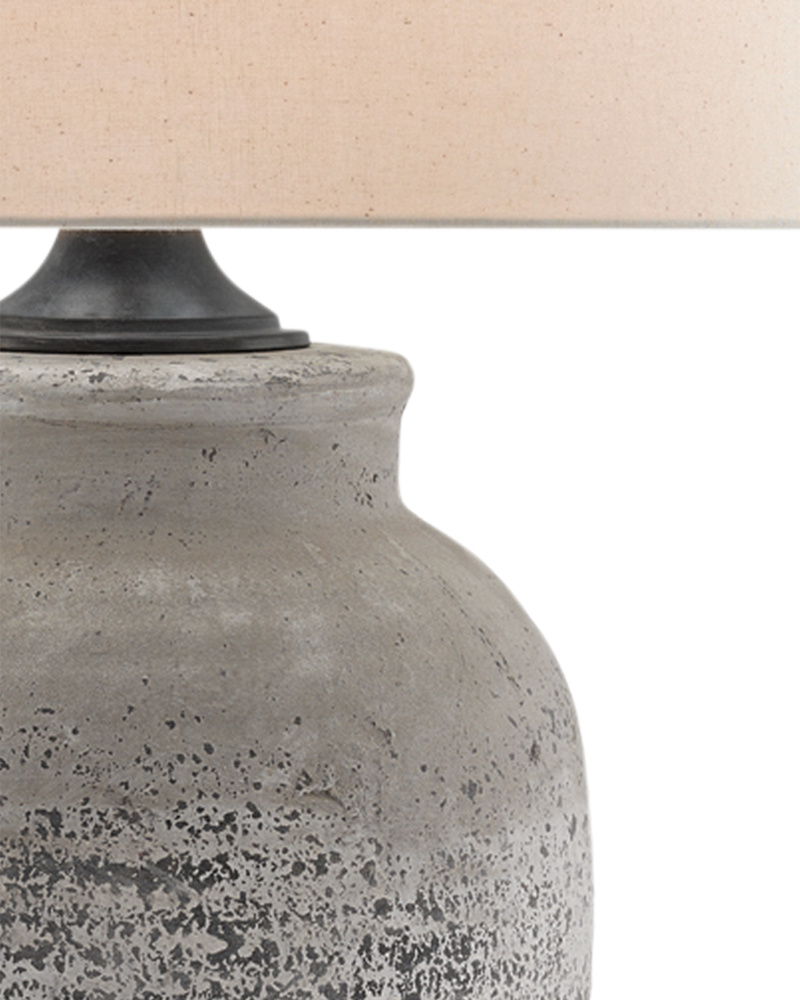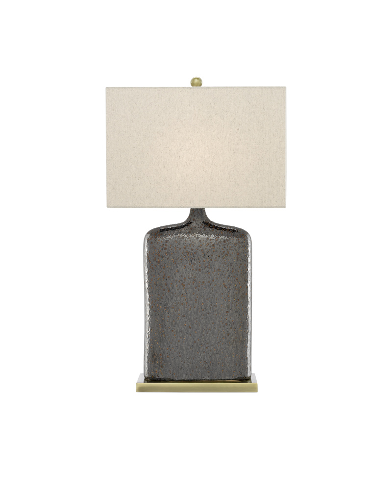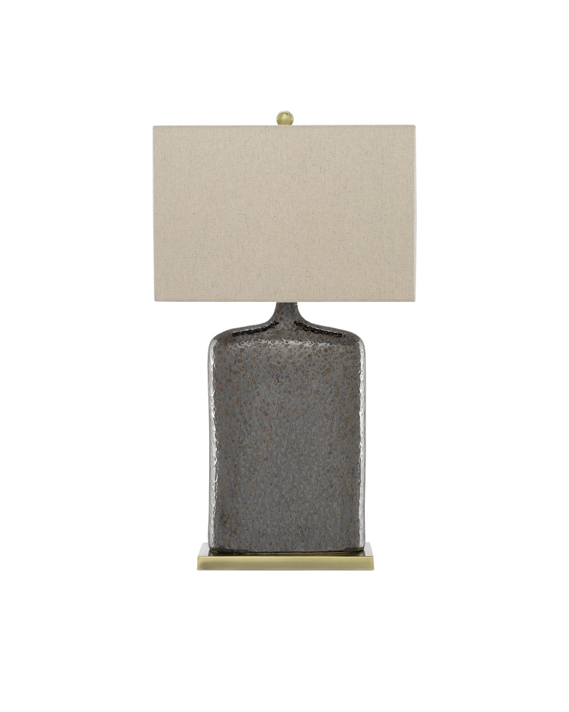 Like a lovely oversized flask of light, the rustic metallic bronze glaze on the Musing Table Lamp could cause unrestrained bouts of contemplation when the light is switched on. The natural pitting of the glaze adds interest to the distinctive shallow depth of its elongated body, as does the metal plinth-like base that has been treated to a bronze finish for resonance. The lamp is topped with a khaki linen shade to make it a composition you will enjoy contemplating.