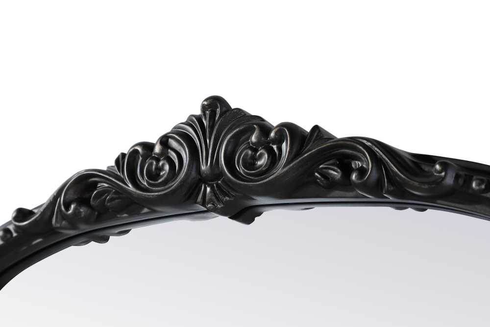 Bring classic charm and vintage character to your home with this arched wall mirror in a distressed vintage bronze finish. The hand-painted frame showcases ornate scroll and floral detailing, creating a refined, old-world aesthetic. Crafted from resin with an MDF backing board, this mirror is lightweight yet durable. Designed for vertical hanging only, it includes a metal inset hanger for easy installation (hardware not included). Whether placed above a fireplace mantel, in an entryway, or as an accent piece in a living room, this mirror enhances the space with its architectural beauty. Available in multiple sizes and an alternative antique brass finish, it is a versatile addition to classic, vintage, or French-inspired interiors.
