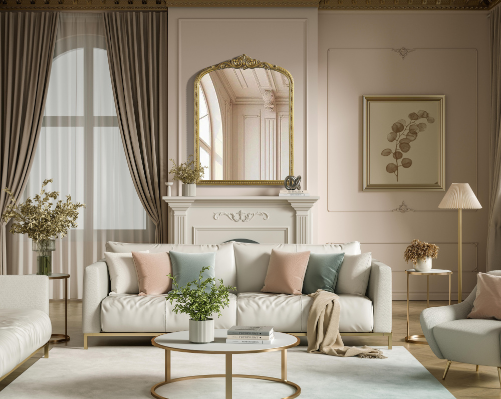 The sculpted crest with scrolling accents at the top enhances its traditional and French-inspired design.