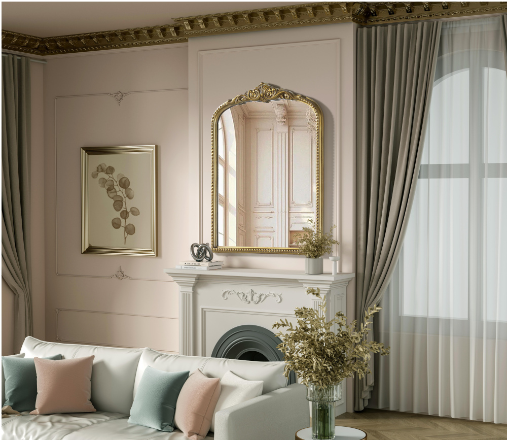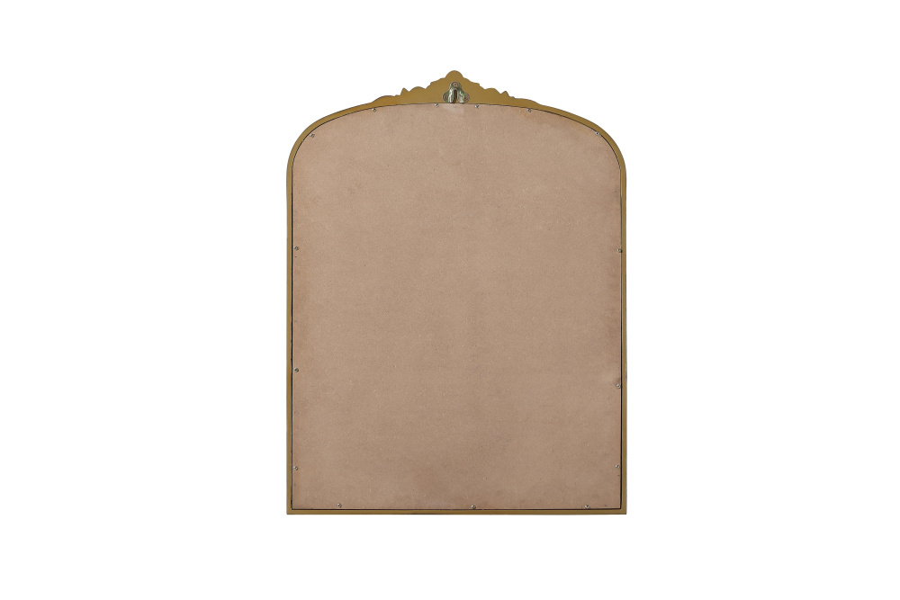 Add a touch of old-world charm to your home with this antique brass arched wall mirror, designed to bring timeless elegance and vintage character to any space. The hand-painted distressed finish gives the frame an aged, classic appeal, while the ornate crest and intricate detailing add a traditional European touch. Crafted from resin with an MDF backing board, this mirror is both lightweight and durable. Designed for vertical hanging only, it features a single metal inset hanger for easy wall mounting (hardware not included). Whether placed above a fireplace mantel, in an entryway, or as an accent piece in a living room, this mirror creates a refined focal point. Available in multiple sizes and an alternative vintage bronze finish, it complements a variety of interiors, from classic and French country to vintage-inspired spaces.