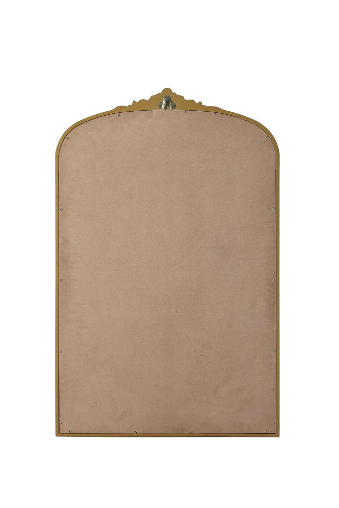 Add a touch of old-world charm to your home with this antique brass arched wall mirror, designed to bring timeless elegance and vintage character to any space. The hand-painted distressed finish gives the frame an aged, classic appeal, while the ornate crest and intricate detailing add a traditional European touch. Crafted from resin with an MDF backing board, this mirror is both lightweight and durable. Designed for vertical hanging only, it features a single metal inset hanger for easy wall mounting (hardware not included). Whether placed above a fireplace mantel, in an entryway, or as an accent piece in a living room, this mirror creates a refined focal point. Available in multiple sizes and an alternative vintage bronze finish, it complements a variety of interiors, from classic and French country to vintage-inspired spaces.