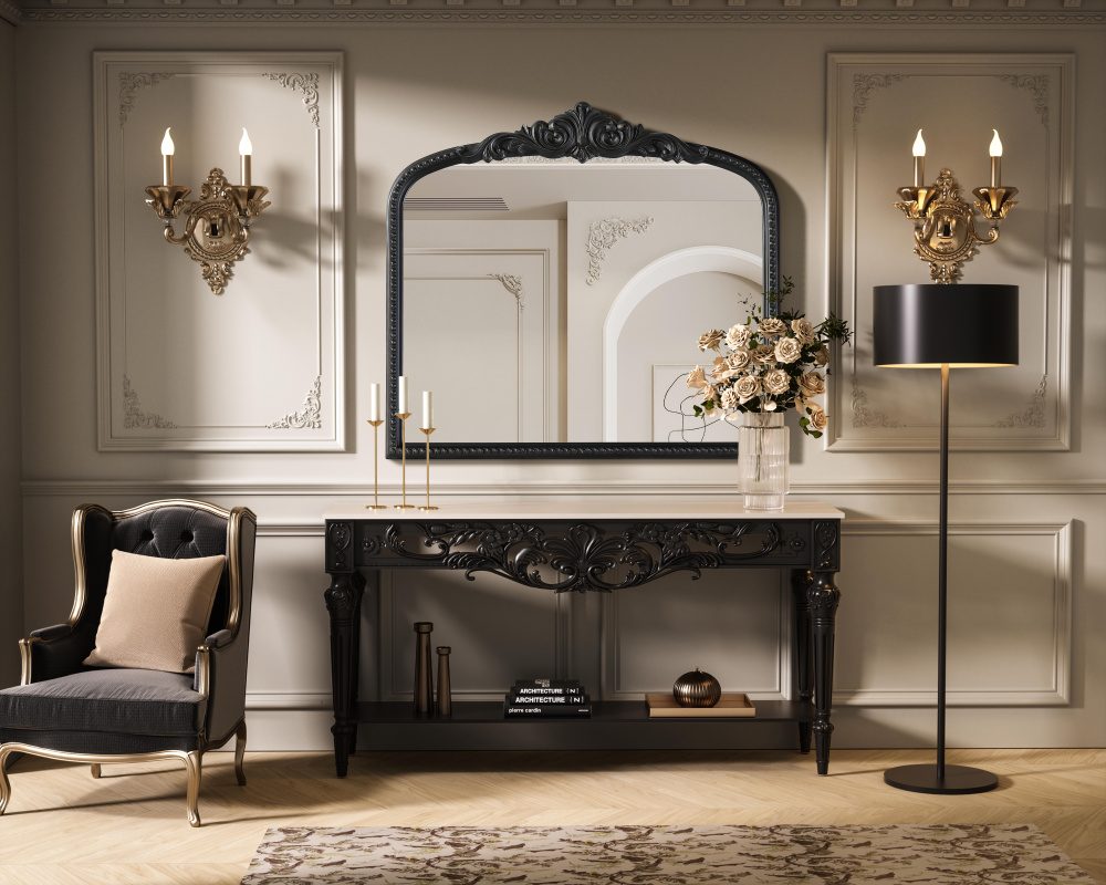 The sculpted crest with scrolling accents at the top enhances its traditional and French-inspired design.