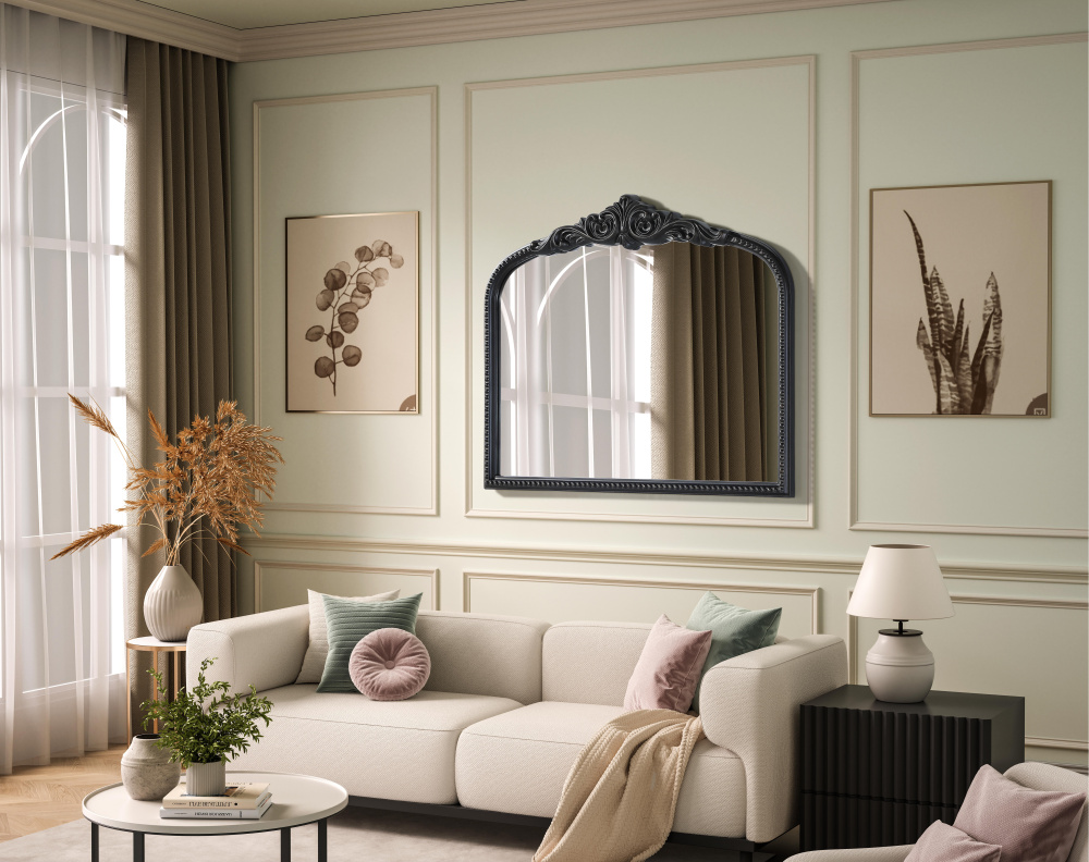 The sculpted crest with scrolling accents at the top enhances its traditional and French-inspired design.