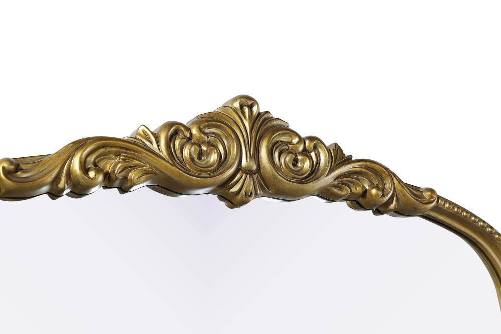 Add a touch of old-world charm to your home with this antique brass arched wall mirror, designed to bring timeless elegance and vintage character to any space. The hand-painted distressed finish gives the frame an aged, classic appeal, while the ornate crest and intricate detailing add a traditional European touch. Crafted from resin with an MDF backing board, this mirror is both lightweight and durable. Designed for vertical hanging only, it features two metal inset hangers for easy wall mounting (hardware not included). Whether placed above a fireplace mantel, in an entryway, or as an accent piece in a living room, this mirror creates a refined focal point. Available in multiple sizes and an alternative vintage bronze finish, it complements a variety of interiors, from classic and French country to vintage-inspired spaces.