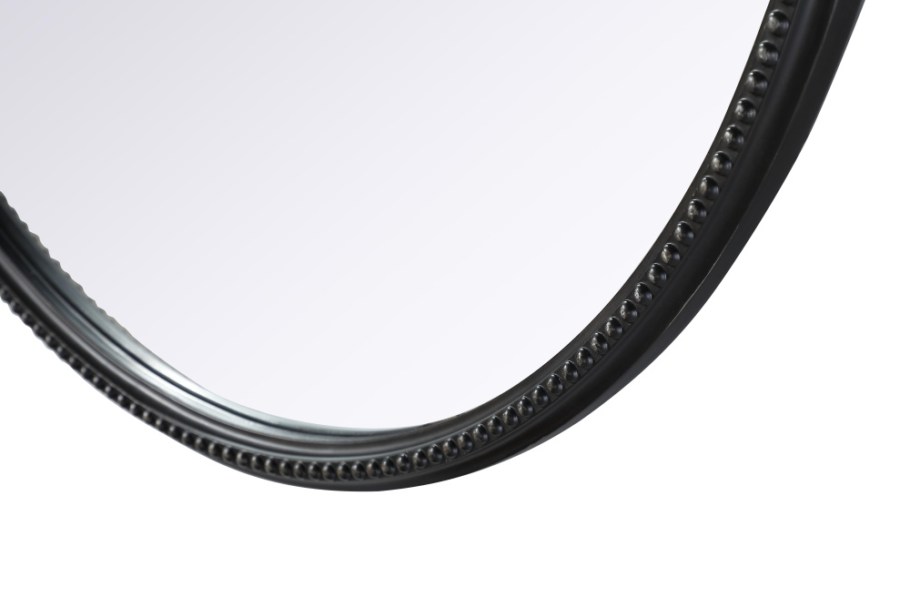 The outer edge of the mirror is lined with a delicate beaded pattern, adding texture and dimension.