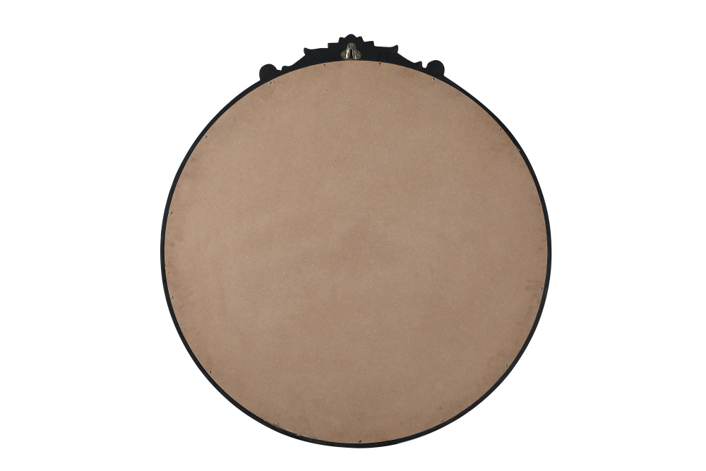Bring vintage charm and refined craftsmanship to your space with this round wall mirror in a distressed vintage bronze finish. The hand-painted frame showcases ornate scroll and floral detailing, creating a timeless, old-world aesthetic. The beaded trim along the edge enhances the decorative appeal, making it an eye-catching statement piece. Crafted from resin with an MDF backing board, this mirror is lightweight yet durable. Designed for vertical hanging only, it includes a metal inset hanger for easy installation (hardware not included). Available in multiple sizes and an alternative antique brass finish, this mirror is perfect for vanity stations, bathrooms, entryways, or living rooms, adding architectural beauty and a sophisticated touch to any space.